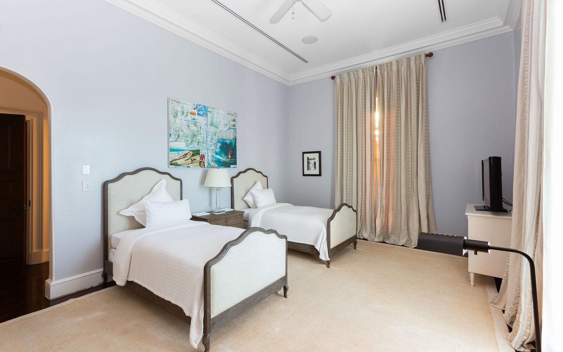 Set on an elevated property with 140 ft of stunning Beach within the prestigious Ocean Club Estates on Paradise Island, Pembroke House offers spectacular ocean and beach views. This Georgian-style beachfront home features a grand two-story foyer, gourmet kitchen, formal dining room, family room, and a wood-paneled study with a working fireplace. The second floor boasts 4 ensuite bedrooms, three with balconies. Two cottages flank a landscaped quadrangle with a fountain. Outside, a 50-foot lap pool, a jacuzzi spa, an outdoor grill, a kitchen, and a poolside dining area are perfect for entertaining. Additional features include computerized lighting, a multi-zone speaker system, hardwood floors, 12-foot ceilings, 140 linear feet of beach frontage, hurricane-rated windows and doors, and a standby generator. Residents of Ocean Club Estates enjoy 24-hour patrolled security, the option to acquire golf membership at the Tom Weiskopf-designed golf course and Club House, eligibility to join the Ocean Club Residences Marina & Yacht Club, use of the Beach Club.