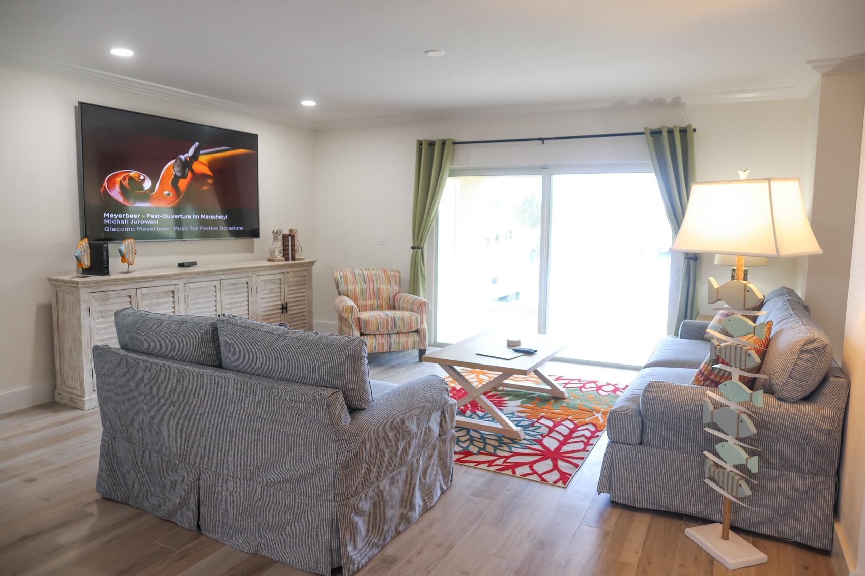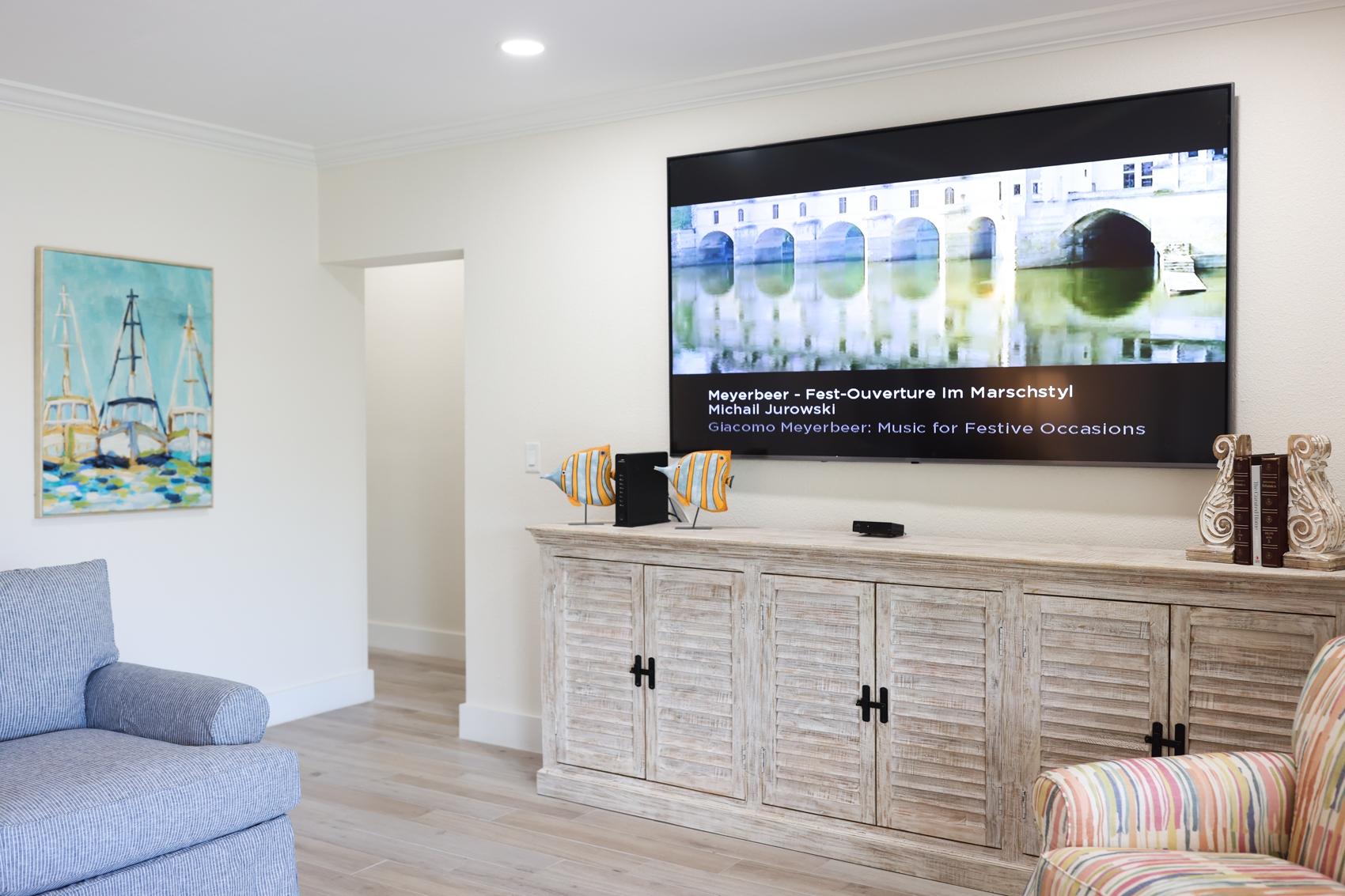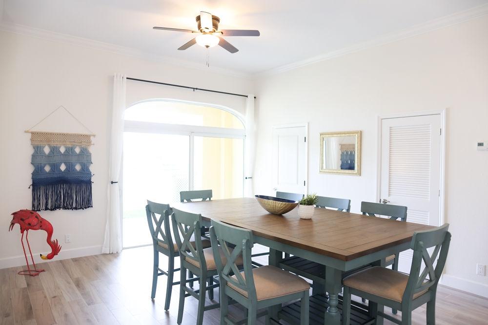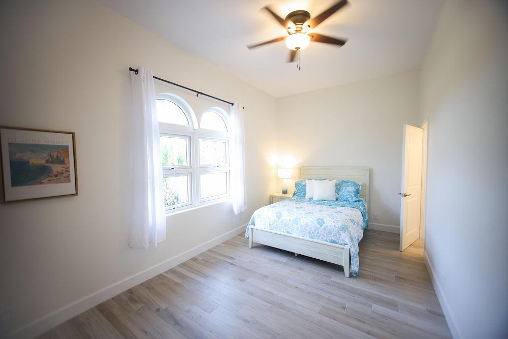 The Andros Villa is 5 bedroom 5.5 bath villa overlooking the marina at Villa Marina Cove. Centrally located on Midshipman Road it is conveniently located between Taino Beach and Port Lucaya. The 5 bedrooms are elegantly furnished with king beds and premium linens with ensuite luxury bathrooms. The living room features an 85-inch TV and the bedrooms are equipped with 55-inch smart TVâs. 3 bedrooms are located on the ground level with the gourmet kitchen, large dining area and living area with patio doors leading to an outdoor patio and the marina. There is also a half bath and full-size washer and dryer located on the ground level. Upstairs features a large master suite equipped with ensuite bathroom with glass shower stall, double vanity, and soaker tub. The 2nd upstairs bedroom has a king size bed, desk and ensuite bath. Covered parking and an outdoor pool are included and the entire property is secured and gated.