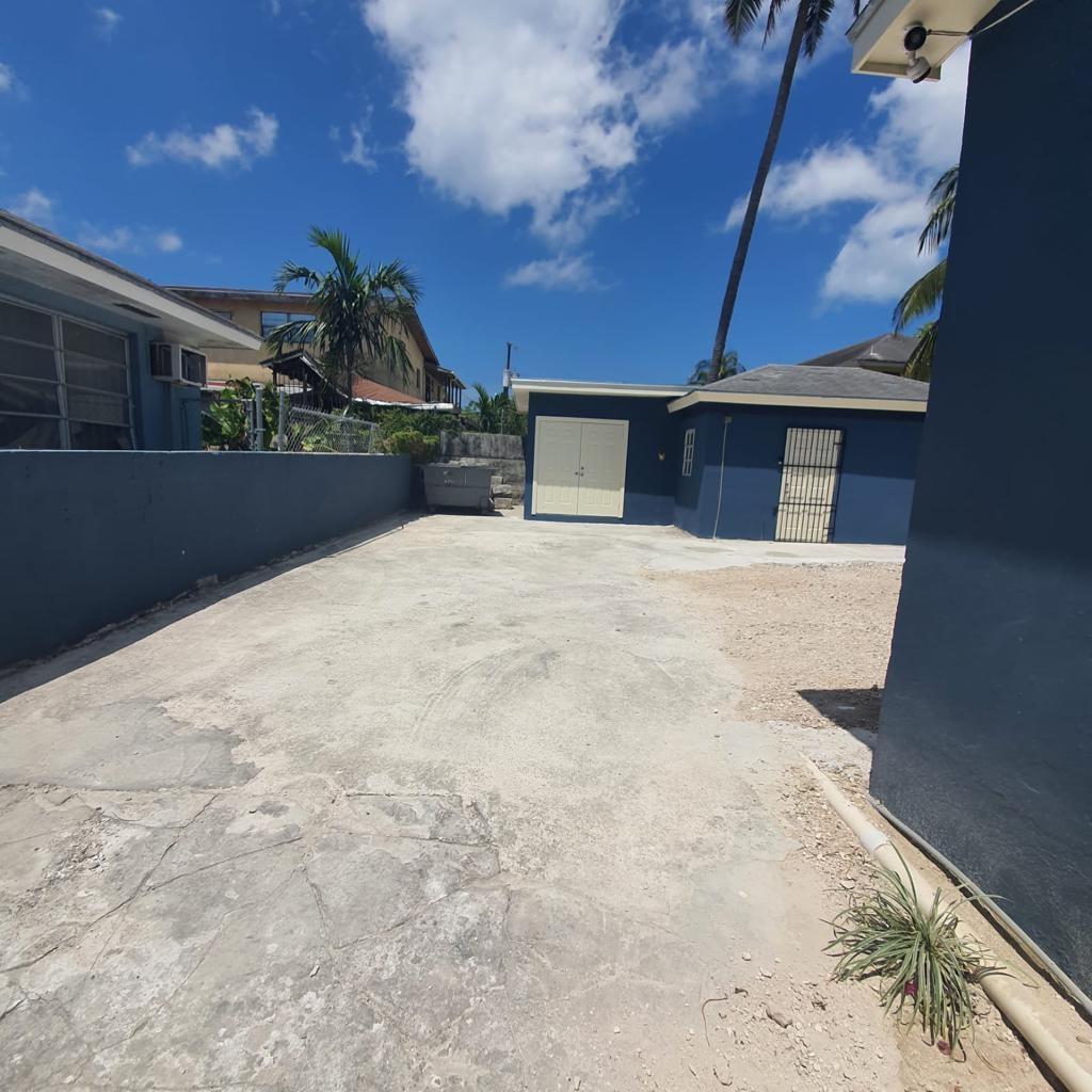 This 2 storey Bahamian-style building with security on the windows and doors is easily accessible and centrally located in the Palmdale area. Features covered entry porch, first floor living/ dining, kitchen, 2 bathrooms and tiled floors. Second floor loft holds 2 bedrooms with storage space, wooden floors, split A/C units, security bars. Paved driveway in front and back, ample parking, enclosed on 3 sides. There is also storage at the rear of the property with 2 rooms and a bathroom which can be converted into an efficiency.