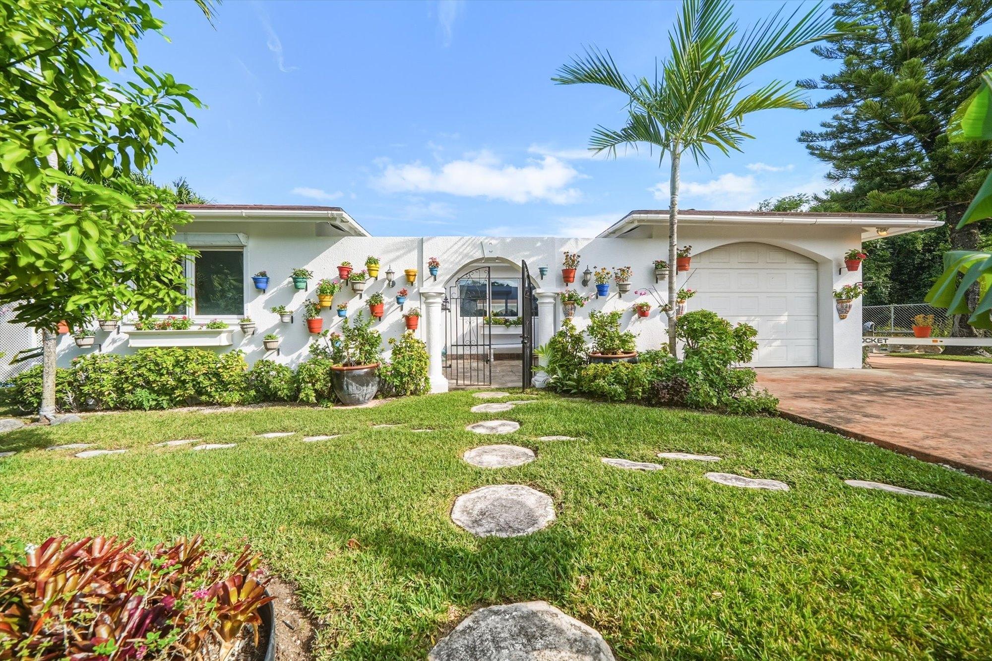 Situated in the quiet neighborhood just off the historic Eastern Road, this fully furnished and meticulously maintained home offers privacy, charm, and exceptional indoor-outdoor living. This 3,235sf residence is centered around a sunny courtyard with an inviting swimming pool and 1,835 sq. ft. of covered patios. An open-concept living, dining and kitchen area features tray wooden ceilings, courtyard views, a central island, granite countertops, SS appliances, a trash compactor, and an RO water system. The home includes a second bedroom with adjacent bath, a primary bedroom with cedar-lined walk-in closet and en-suite bath, and a large adjoining study suitable for conversion to a bedroom. A replica British pub provides a unique entertainment space, while a guest cottage offers its own living room, kitchen, and bathroom. The fully enclosed half-acre property includes automatic gates, hurricane-rated windows and doors, roll-down shutters, central and split A/C, garage, 20KW generator, solar pool heating, alarm system, fruit trees, gardens, sheds, and rainwater collection.