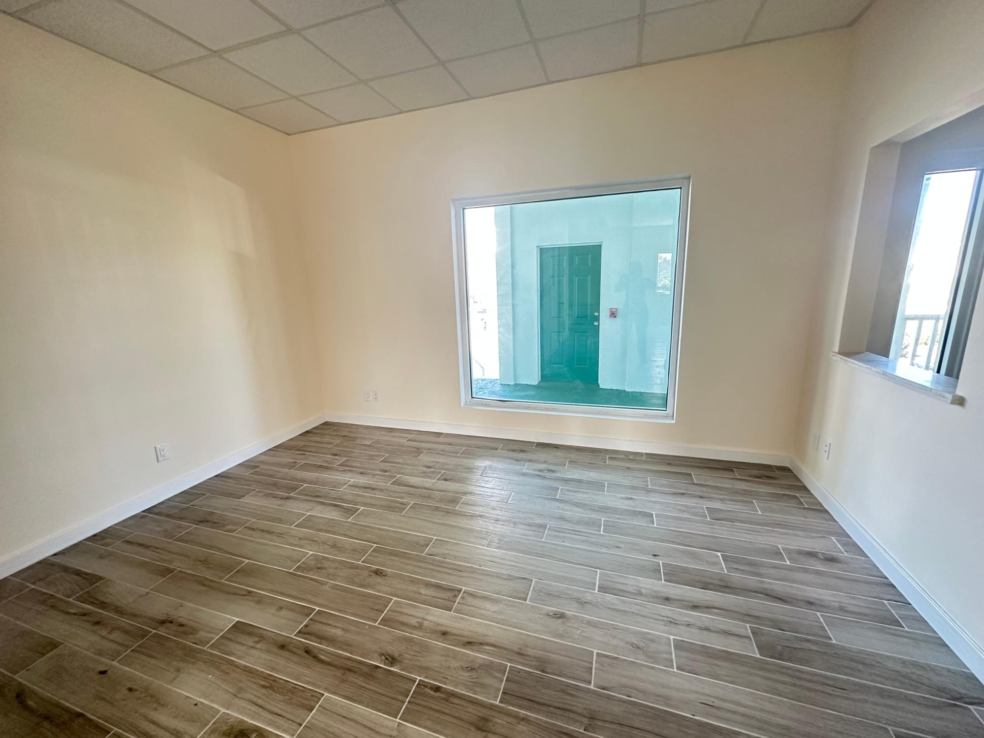 Two-storey New build office located on the second floor opposite elevator, with reception area and open plan layout downstairs and private room upstairs in open plan setting. Includes 24-hour security, CCTV and back-up generator. Popular restaurants, post office, gas station, bank, and gym close by. Office Size: 1,551.84 sq ft. Price includes rent and CAM exclusive of VAT.