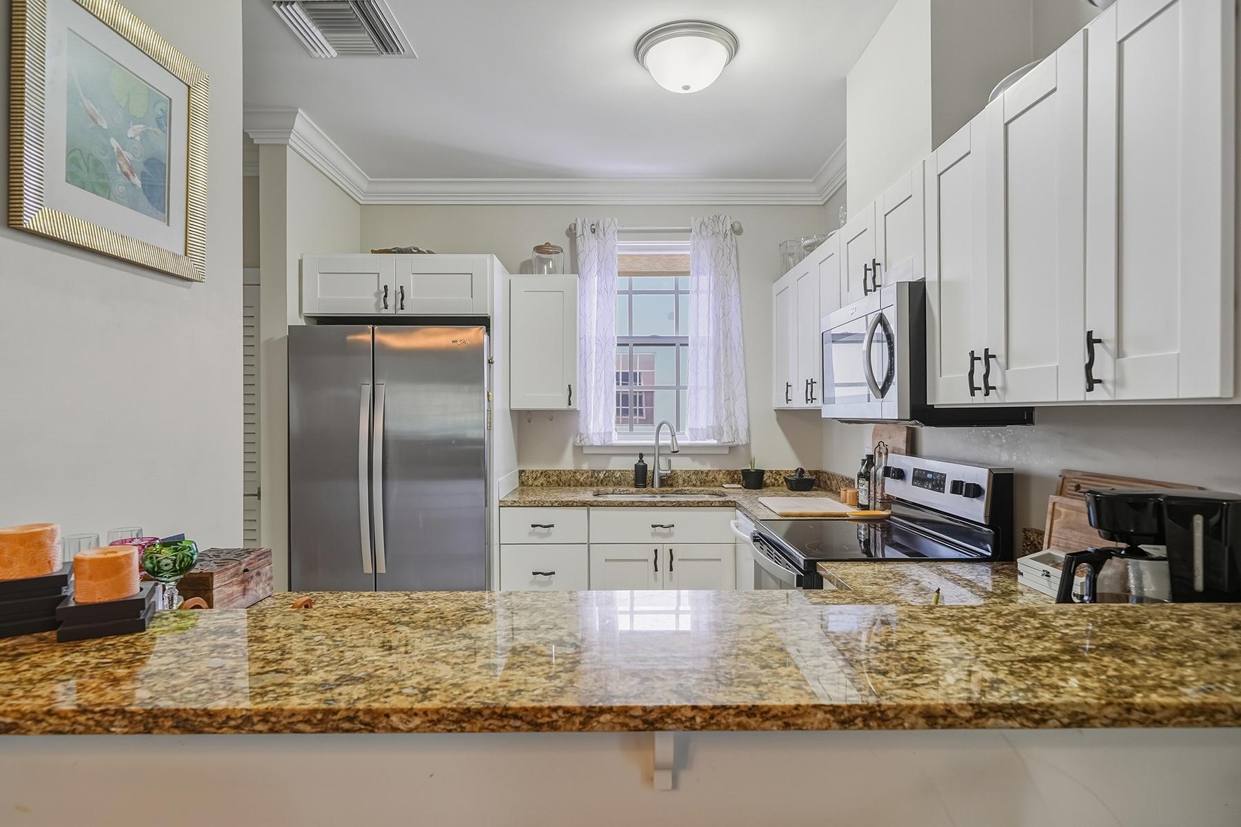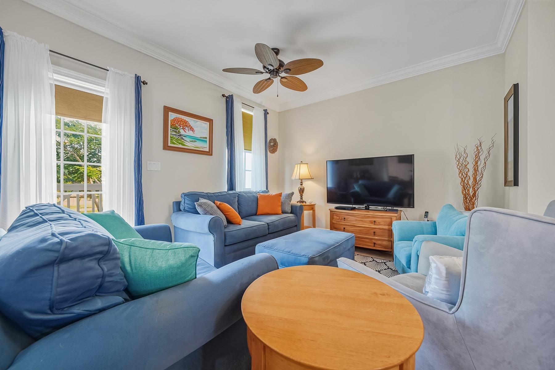 Located in the highly sought-after gated community of Palm Cay, this beautifully designed split-level second-floor condo offers comfort, style, and resort-style living in Nassauâs eastern district. The residence features two bedrooms, each with its own en-suite bathroom, plus a versatile additional space ideal for a home office, den, or third bedroom. The open-concept living, dining, and kitchen area flows seamlessly onto a private deck overlooking a meticulously landscaped garden, perfect for relaxing or entertaining. The kitchen is well appointed with granite countertops, wood cabinetry, and white appliances. Additional highlights include porcelain tile flooring throughout, ceiling fans, and central air conditioning, ensuring year-round comfort. Residents of Palm Cay enjoy exceptional amenities, including 24-hour security, a full-service marina, spa and fitness center, and an exclusive Members Club offering access to a private beach, swimming pool, and restaurant. Community amenities also include a swimming pool, tennis courts, and mini golf.