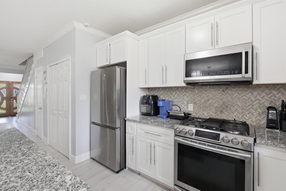 Set within a highly desirable, private gated community, this turnkey 2-bedroom, 2.5-bath luxury rental offers 1,630 sq. ft. of refined island living, blending modern comfort with effortless style. The open-concept layout features a spacious, light-filled living room that flows seamlessly into the dining area and fully equipped kitchen. Beautifully furnished throughout, the home is truly move-in ready. Each bedroom features its own en-suite bathroom, with a convenient half bath on the main level. The primary suite includes a private balcony, perfect for morning coffee or evening relaxation. An outdoor patio and well-maintained yard extend the living space, ideal for entertaining or unwinding. A single-car garage, driveway, and in-unit washer and dryer add everyday ease. Enjoy resort-style living with access to a pool, tennis courts, and clubhouse, all within a secure, family-oriented setting near top beaches, shopping, and key west-end communities. Elevated island living begins here. Schedule your private tour today.