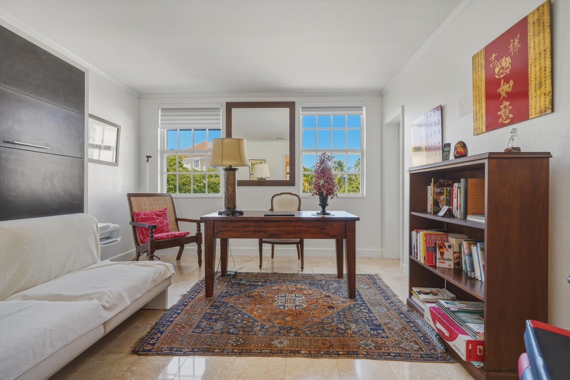 Noble House #6 is a beautifully renovated 3 bedroom, 3.5 bathroom waterfront residence on Paradise Island, offered fully furnished and turnkey following a 2024 renovation. The condo features high pitched ceilings in the bright open living and dining areas and enjoys harbor views from the living room, dining room, kitchen, and primary suite. The separate kitchen is appointed with stainless steel appliances, quartz countertops, and a wine fridge, while all bathrooms also feature quartz finishes. The primary suite includes a spacious dressing area and the residence offers abundant storage throughout. Outdoor living includes a large furnished patio overlooking the harbor and a rare 900 sq. ft. private rooftop terrace, one of only two in the building, ideal for entertaining and relaxing with sweeping views. Additional highlights include a 35 ft. dock slip, rooftop storage area, gated entrance, swimming pool, two parking spaces, and backup generator.