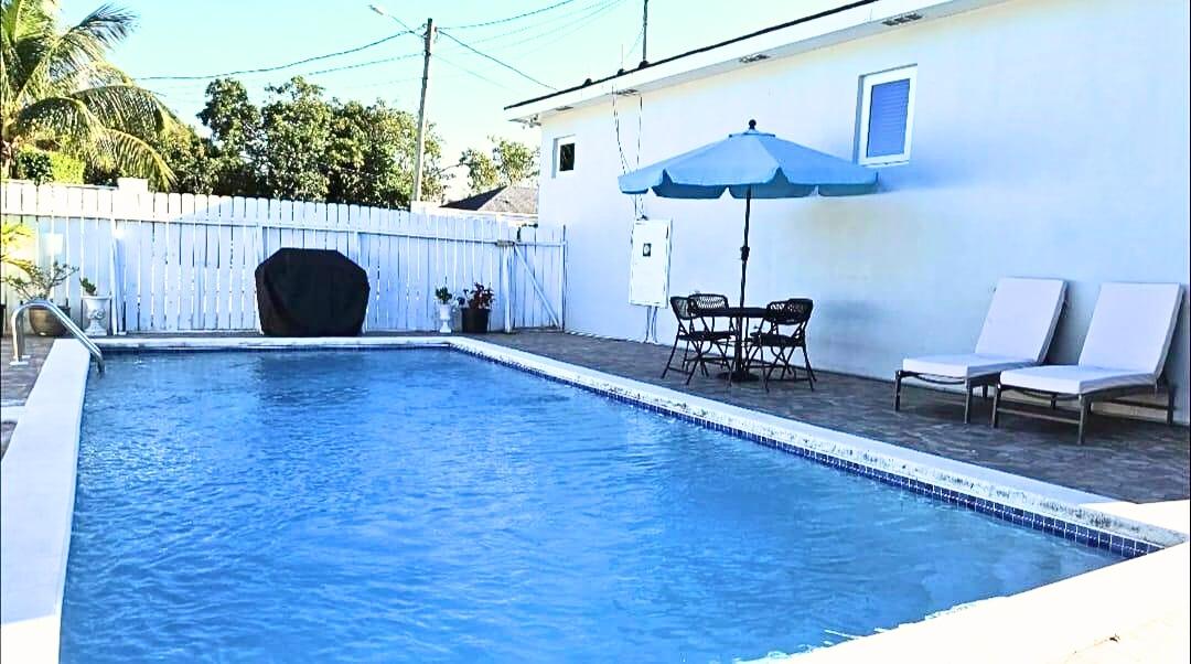 Well-appointed 3-bedroom residence located in the serene Western Nassau area, just minutes from Albany Resort, Lyford Cay, Jaws Beach, and Clifton Heritage National Park. Conveniently positioned only 10 minutes from the international airport, with popular dining options nearby. This home features a spacious primary suite with a luxurious ensuite bathroom, complete with a jacuzzi tub and double shower. Two additional bedrooms share a full bathroom, complemented by a convenient half-bath. The property offers a fully fenced yard and private swimming pool, ideal for outdoor entertaining, relaxation, or family enjoyment.