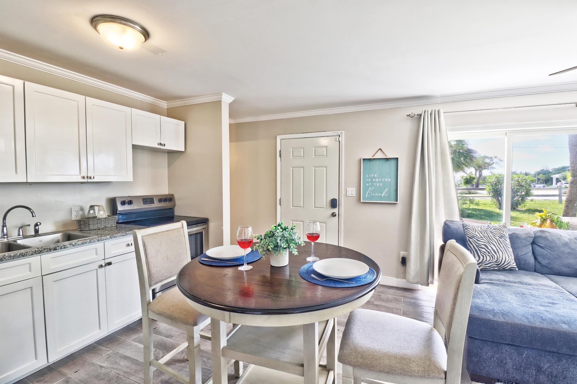 Beautifully Renovated Beach Villa in Treasure Cay. This updated 2-bedroom, 2-bathroom corner villa combines style, and convenience. The open-concept kitchen, living, and dining area is bright and welcoming, while the spacious master suite features a private patio, day couch, and walk-in closet. Perfectly situated, just a 3-minute walk to Treasure Cay Beach, the community pool, and the local shopping center, this villa offers effortless island living. The shopping area includes a convenience store, liquor store, souvenir shop, and the beloved Café La Florence, known for its fresh island bread and Bahamian treats. With its low-maintenance design, this home is ideal as a vacation getaway, income property, or starter home.