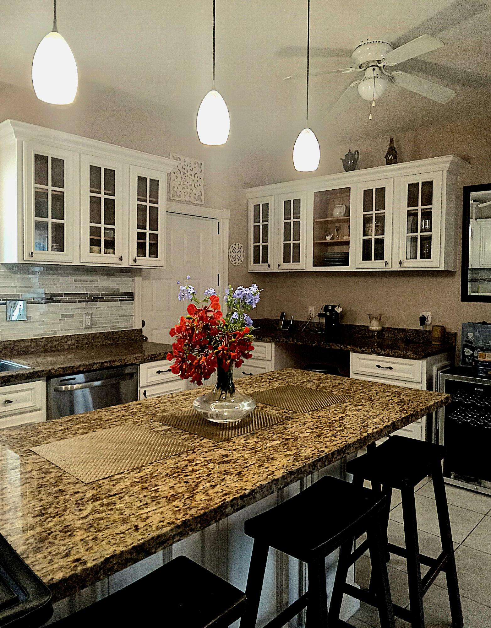 Welcome to this beautifully maintained 3-bedroom, 2-bathroom home in the sought after gated community of Treasure Cove. With 1,590 sq. ft. of bright, open living space, this home features a stylish chefâs kitchen with granite countertops, custom cabinetry, and seamless flow into the living and dining areas. Enjoy the warmth of wood flooring in the bedrooms, a full utility room, and central A/C throughout. Step outside to your own private backyard retreat, complete with a sparkling pool, sun deck, and lush landscaping supported by a sprinkler system. A backup generator adds peace of mind. Ideally located just minutes from beaches, shopping, and dining, this home offers the perfect mix of comfort, style, and island living. Donât miss this rare opportunity, Schedule a viewing today!