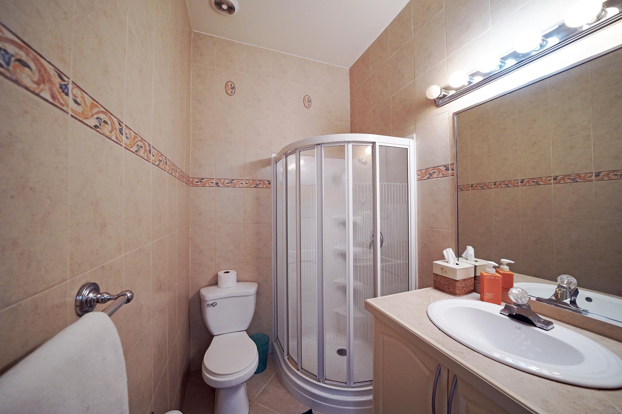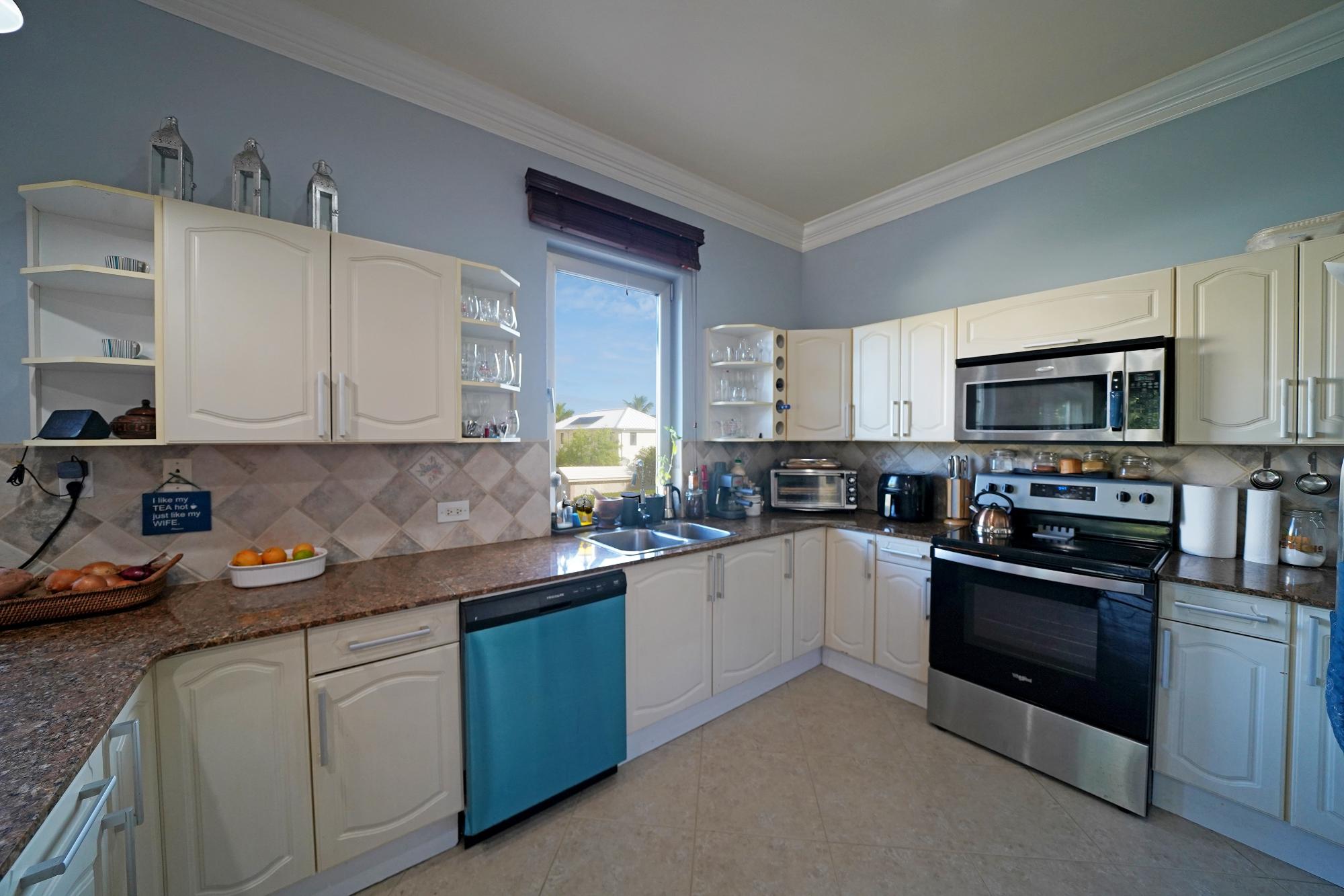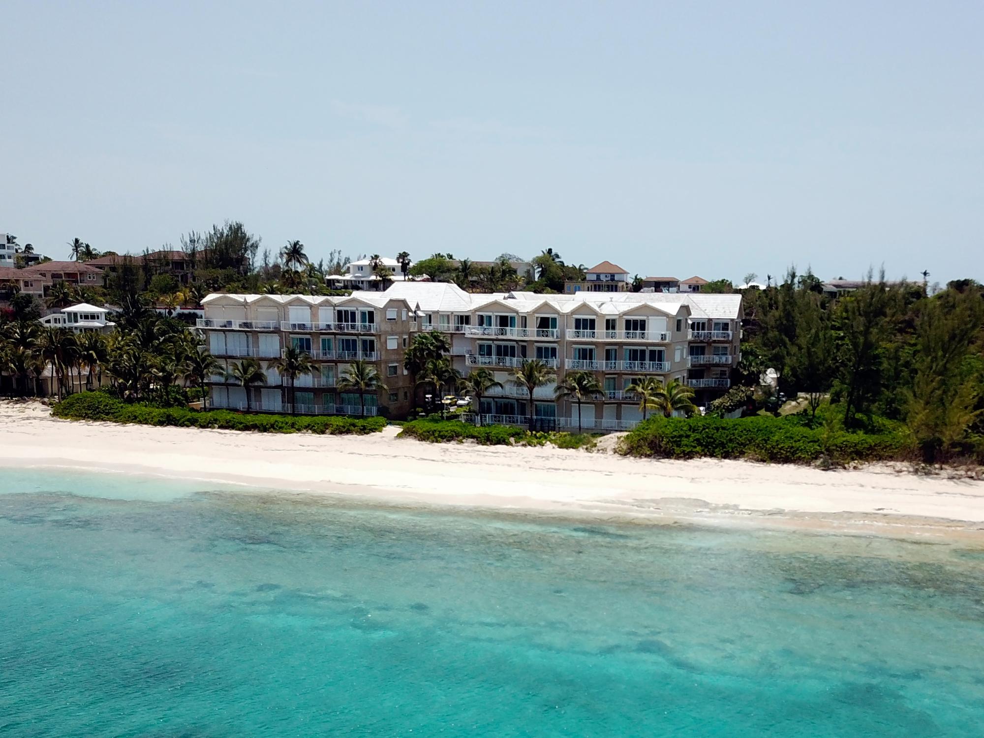 This exceptionally spacious condominium is ideally located on the pristine shores of Love Beach, offering comfort, style, and a relaxed coastal lifestyle. Spanning approximately 2,400 square feet, the three-bedroom, three-and-a-half-bath residence features 10-foot ceilings, 8-foot solid wood doors, and a well-designed layout ideal for family living and entertaining. A welcoming entrance hall leads into a bright, open-plan living and dining area with ocean breezes and access to a wrap-around balcony. The generously sized kitchen is equipped with granite countertops, stainless steel appliances, and a breakfast bar. All bedrooms feature en-suite bathrooms, while the primary suite on the main level includes a walk-in closet and a spacious en-suite with soaking tub, separate shower, double sinks, and vanity. Upstairs are two additional bedrooms and a laundry cupboard. Each bedroom enjoys a private balcony or patio, with ocean and beach views from the living area and second-floor guest bedroom. The condo includes central air conditioning, ceiling fans, hurricane-impact windows and doors,