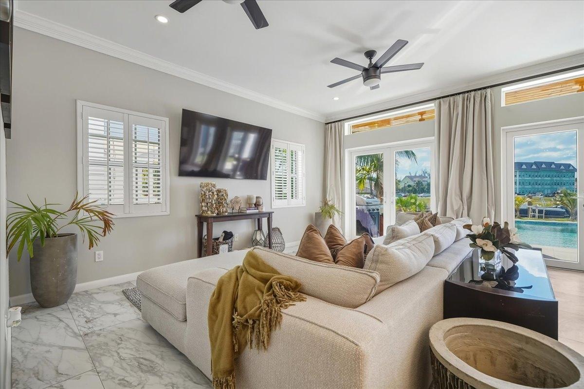 Welcome to #9 Kingfisher Island, Sandyport! Your new dream island inspired home in the most sought after gated community in Western Nassau. This 3,190 sq. ft. canal front masterpiece features 4 bedrooms and 3 bathrooms with marble tiles throughout the lower living area, 10 foot ceilings with large hurricane resistant windows and doors allowing an unlimited supply of rejuvenating sunshine. The sleek kitchen features a large island and is open to the living and dining area, the perfect spot for gathering with friends and family. Step outside the living room to the perfect outdoor living space, where a covered patio, pristine pool and canal await you. This stunning home also features a dock slip allowing up to a 40 ft. vessel. This energy efficient home features state of the art solar panels helping to make this a cost effective home. Call today to view this stunning Sandyport home to see the many amazing amenities yourself.