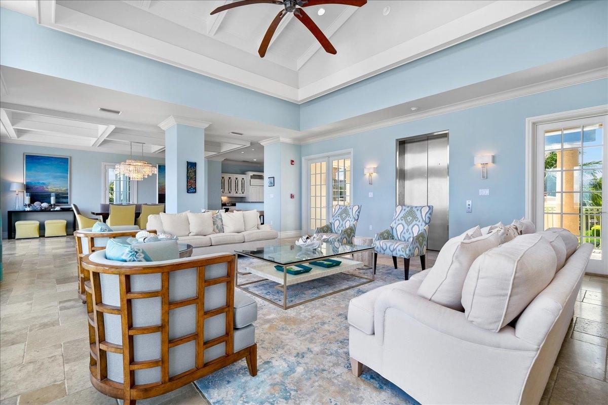 Welcome to Villa 9301, the Grand Penthouse and crown jewel of Grand Isle. Perched at the resort's highest point and enjoying fantastic views over the marina and Exuma sound, this 4 bed, 4.5 bath luxury villa exemplifies Resort Living. At over 5,000 sq ft this large, well-laid-out unit truly is your home away from home. The spacious open-plan kitchen, living and dining areas all enjoy wonderful views and the natural light pours in through the large windows. Patio doors allow for easy access onto the expansive terrace fully outfitted with exotic, wooden lounge furniture. Your own private elevator opens to the grand living room, which leads to the 8-seater dining table, flanked by the massive gourmet kitchen. Top-tier appliances are a chef's dream and the massive island is perfect for prep and the peninsula is the spot for casual dining. The sitting room/TV lounge flanks the living room and offers a comfortable haven with amazing views and patio access. Make Grand Isle your island getaway and enjoy the island lifestyle you have always dreamed of!