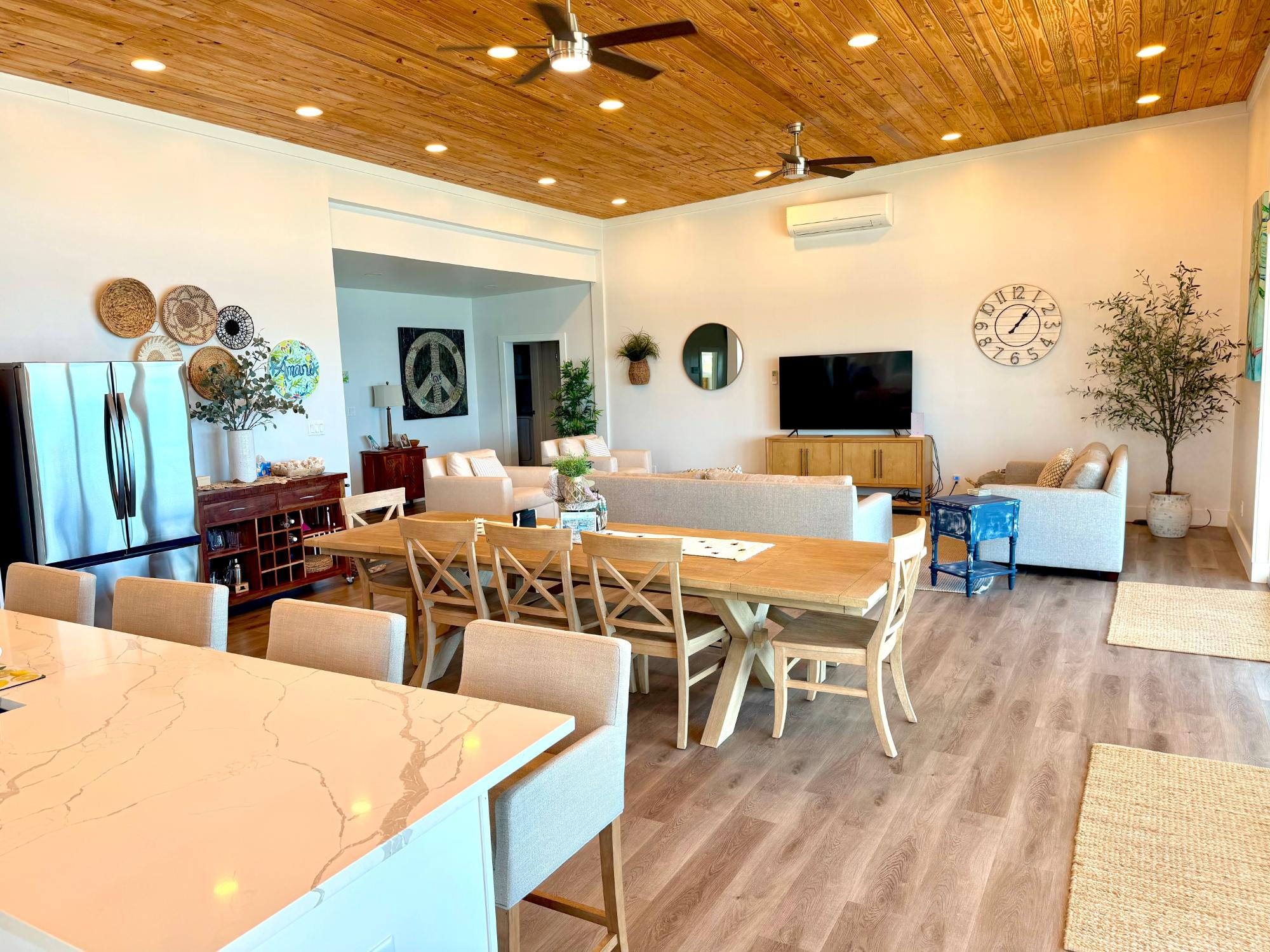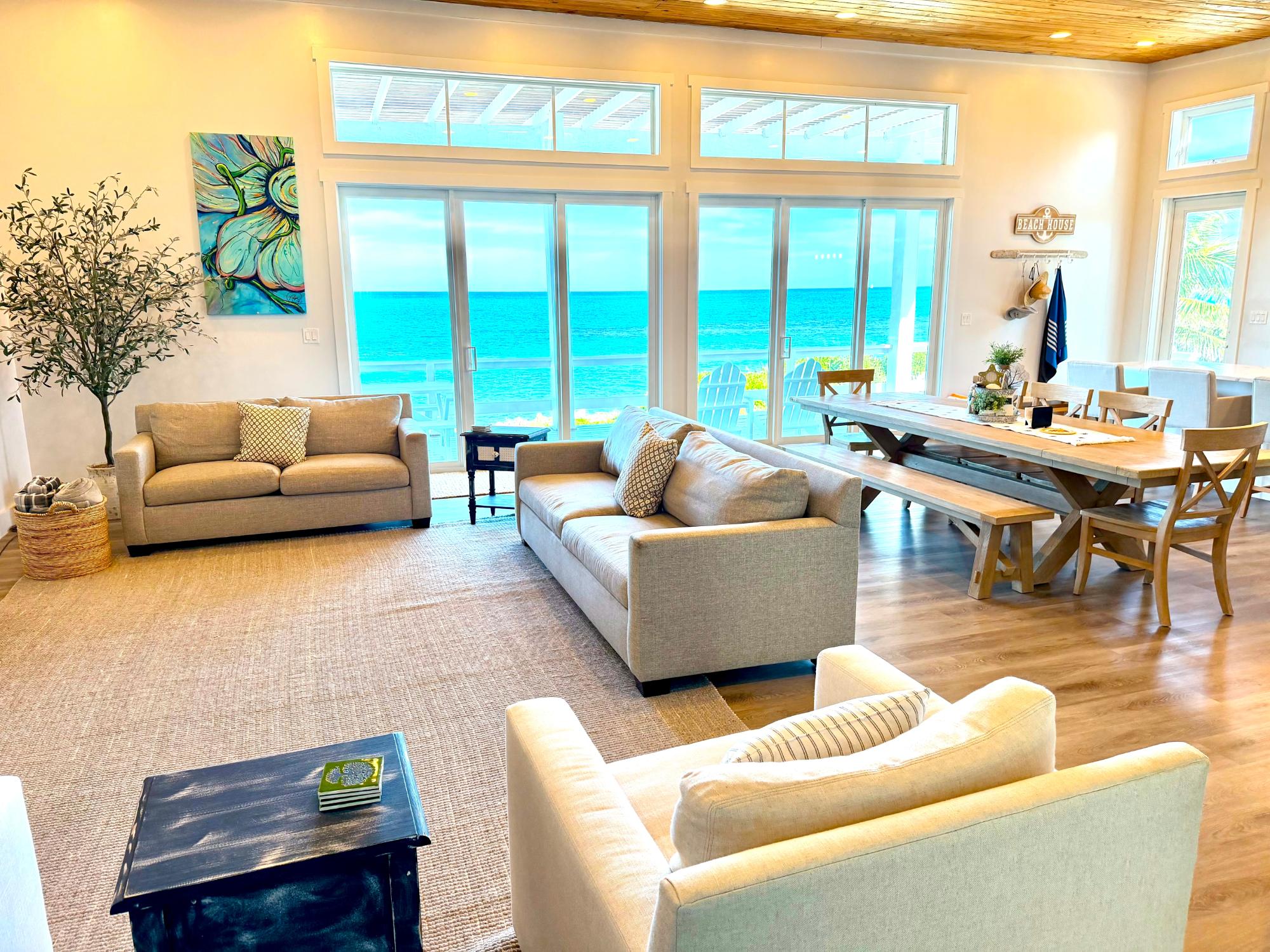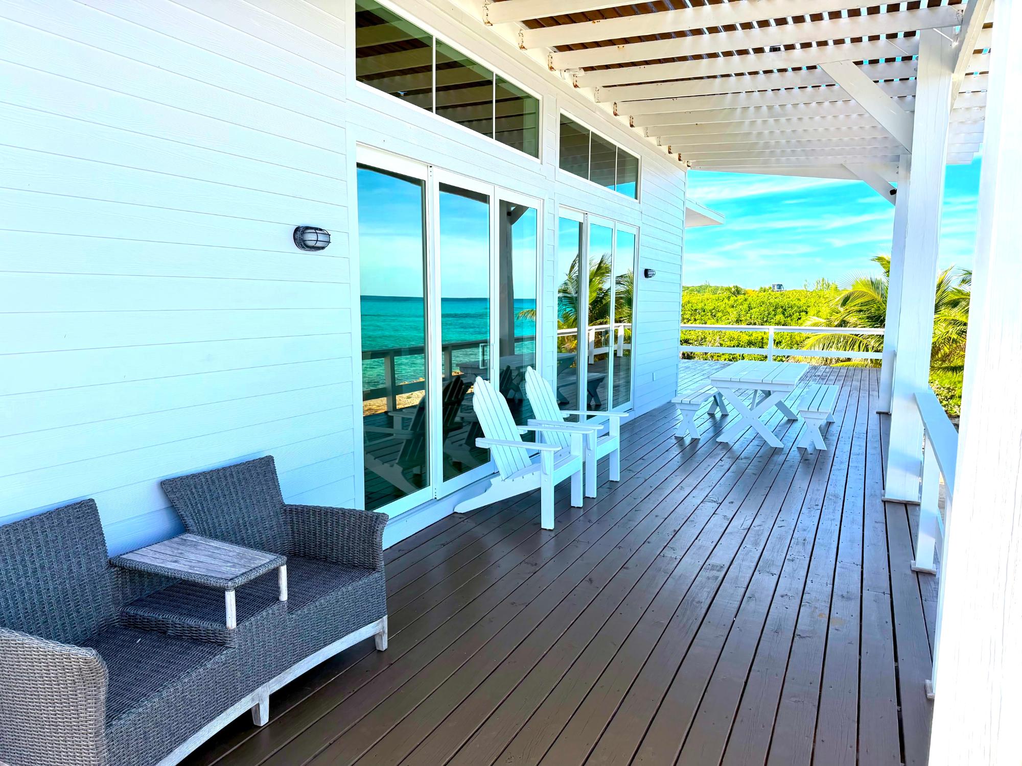 "Amani" speaks true to is positive connotation of "Peace and Tranquility". Located on the south end of Great Guana Cay, this stunning oceanfront home is exquisitely appointed with three bedrooms and three and a half bathrooms. As soon as you enter the home, the open concept leads you through a modern island style kitchen, and the dining and flows right into the living room, making for the ultimate gathering spot for all of your friends and family. You can choose 360 degrees of porches. When you are situated on the main porch on the ocean side, you're in continuous gaze of the stunning Atlantic ocean and its many hues of BLUE with relaxing sounds of the light crash of waves on the shore line. Enjoy a dip just off of the back yard and take in Guana's beautiful tropical reef system. Designed for both privacy and comfort, Amani is enveloped in lush tropical landscaping while only a 10 minute ride to all of Guana's attractions, for the best of both worlds. The house is equipped with an Automatic Standby generator for redundancy and your full enjoyment of the property at all times.