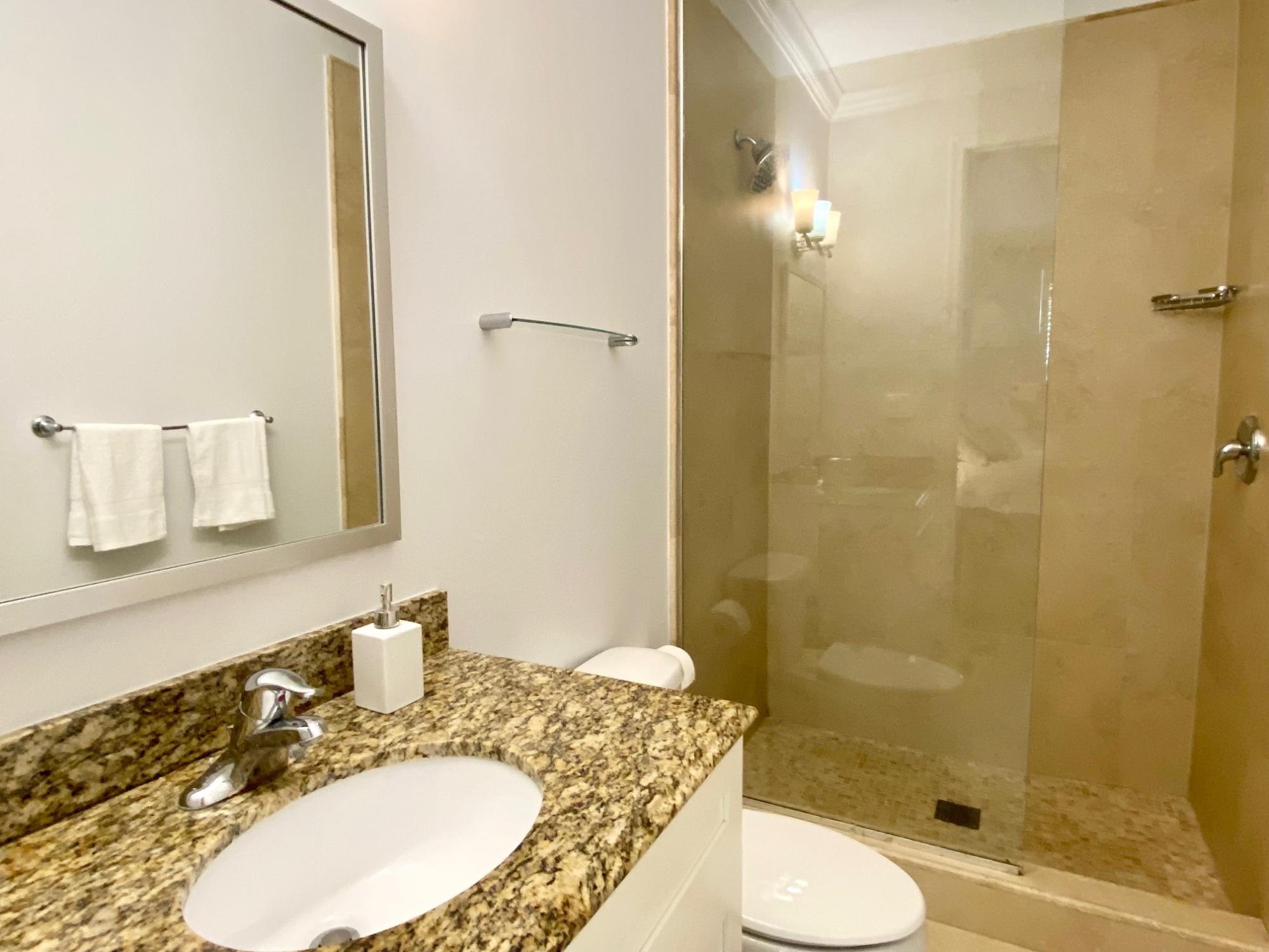 Enjoy condo living at the centrally located Balmoral Development only minutes from downtown Nassau, Nassau Airport and Cable Beach. This lovely single-story condo offers 2 spacious bedrooms and 2 bathrooms, porcelain tile floors, an open living and dining area, a den, a fully equipped kitchen with stainless appliances, a dishwasher and a microwave. There is a laundry room with washer and dryer. The master bedroom has a good sized walk-in closet and both bathrooms have granite countertops. At the back, there is a porch and garden for relaxing. Balmoral offers 24-hour security and membership to the club with 3 Har-Tru clay tennis courts and a large swimming pool. Available now on a one year minimum basis. This won't last so contact us for a showing!