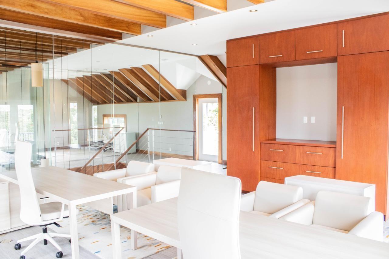 Centrally located in Balmoral, one of Nassau's premier gated communities, this modern office comprises 3300 square feet of interior space, plus balconies. It can accommodate approximately 18-20 people and includes 10 parking spaces, with more available if necessary. This deluxe office features a spacious reception area, a kitchen, 3 bathrooms, an executive board room, and 7 private offices (two of which are larger offices that can accommodate up to 6 people).The office's high ceilings and large windows create a lot of natural lighting and emphasize its beautiful architectural designs and refined millwork. It is nicely elevated, which offers breathtaking views of the ocean and Baha Mar from the upper floors. Equipped with a generator.