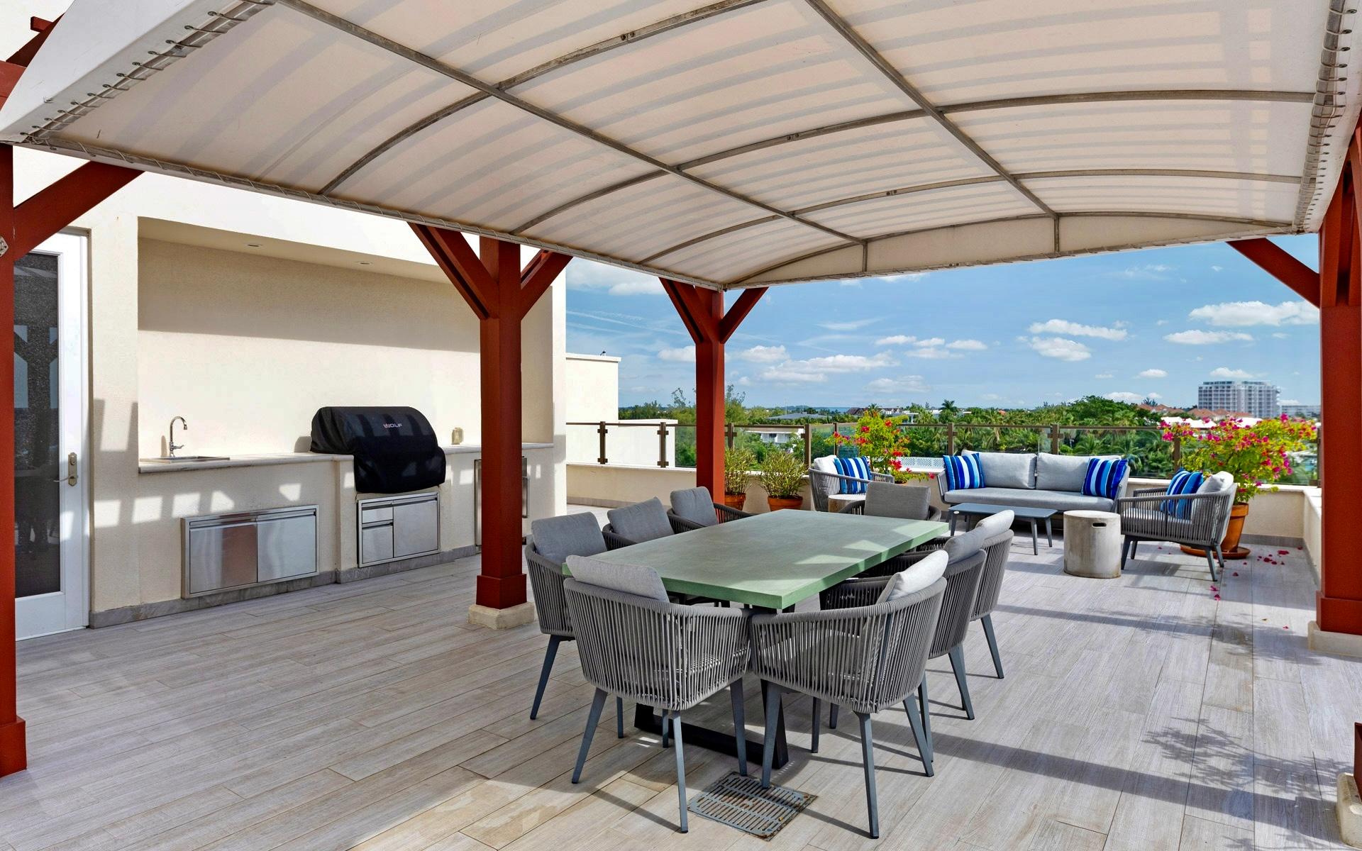 Set within Paradise Islandâs most desirable residential enclave, this elegant third floor penthouse at Thirty Six delivers a rare combination of privacy, panoramic harbor views, and effortless island sophistication. Overlooking Nassau Harbour, Montague Bay, and Paradise Island, the residence captures the essence of refined Caribbean living. Spanning nearly 2,300 square feet across two levels, the home is designed for both entertaining and relaxation. Open, light-filled interiors extend to expansive verandahs, while a private rooftop terrace with an outdoor kitchen provides a tranquil setting for sunset gatherings and alfresco dining. The terrace can be partially or fully enclosed, allowing the addition of a third bedroom, a study, or additional living space. The residence features a timeless neutral aesthetic, spa like bathrooms, custom drapery, motorized blackout shades, and a sleek chefs kitchen outfitted with Caesarstone surfaces, Wolf and Sub Zero appliances, and statement lighting.