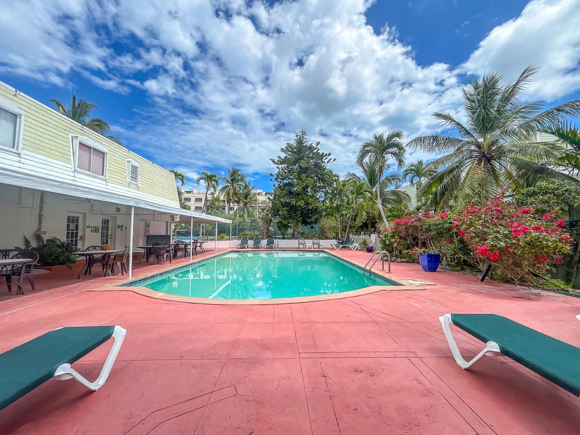 Welcome to this charming ground-floor apartment in the quiet BayView Village community on Paradise Island. This fully furnished, turnkey unit offers comfortable island living with the added bonus of a private backyard, perfect for relaxing or entertaining. The apartment is pet-friendly for small animals, making it a great option for those with pets. Residents enjoy access to two shared swimming pools, a tennis court, and convenient on-site laundry facilities with coin-operated machines. Ideally located, the property is just minutes from the beach, grocery stores, restaurants, and entertainment, offering the perfect balance of tranquility and convenience.