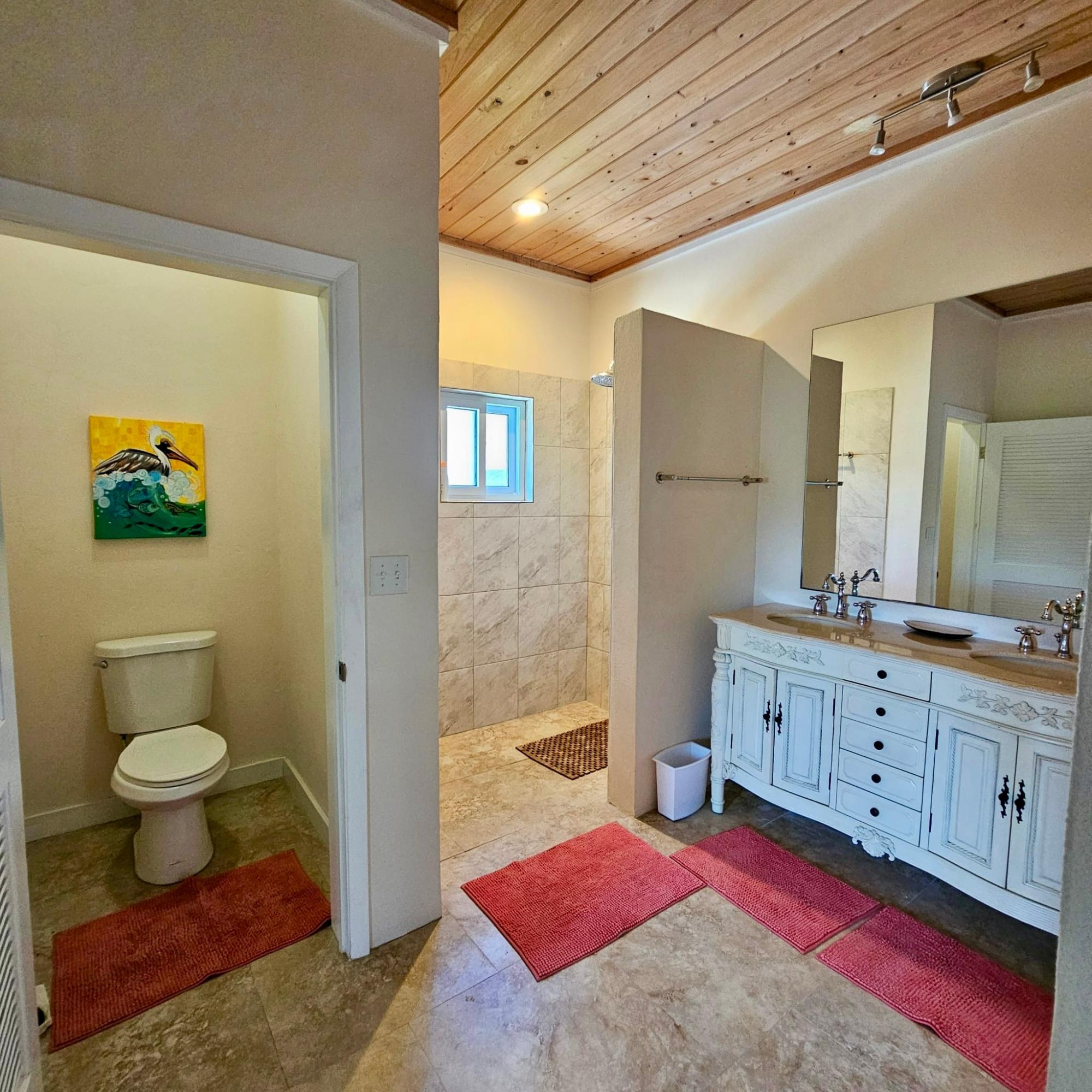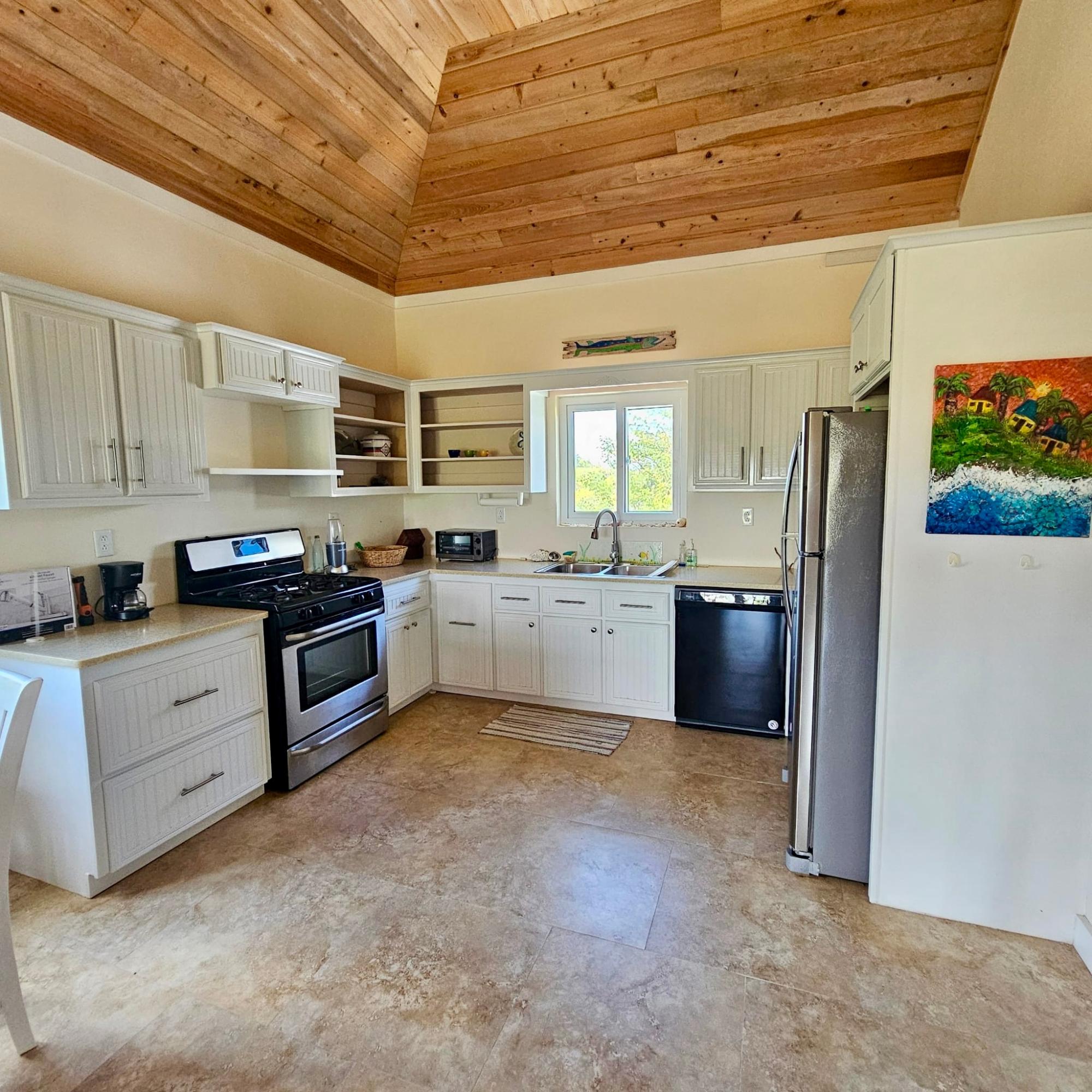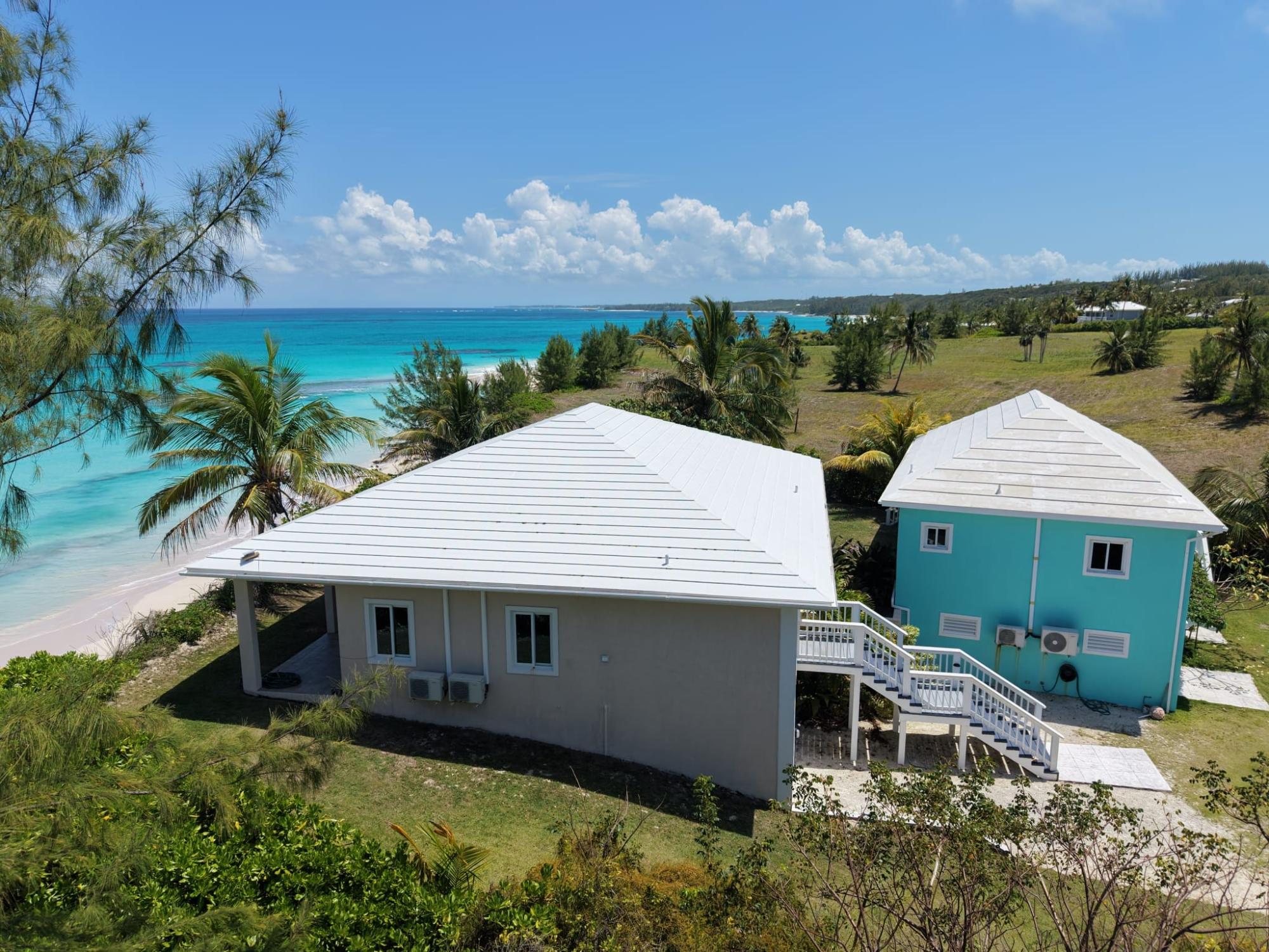 Tucked away off the beaten path on nearly one acre of lush island landscape, Ocean Breeze House and Coconut Cottage offer the perfect blend of privacy, comfort, and breathtaking natural beauty. With 100 feet of pristine beachfront, this exceptional property captures uninterrupted ocean views in a serene setting. The main residence and charming cottage together provide an impressive 4,800 sq. ft. of living space, featuring 3 bedrooms and 3 bathrooms. Both homes are thoughtfully designed with 9-foot high wood ceilings, elegant hardwood kitchen and bathroom cabinetry with Corian countertops, and sleek rectified ceramic tile flooring throughout. Modern stainless-steel appliances, hurricane-impact windows and doors, and a classic Bermuda-style roof ensure both style and durability. Additional amenities include a spacious three-car garage with workshop, as well as a 17KW propane generator for peace of mind. Offered fully furnished, this .991-acre property is move-in ready.
