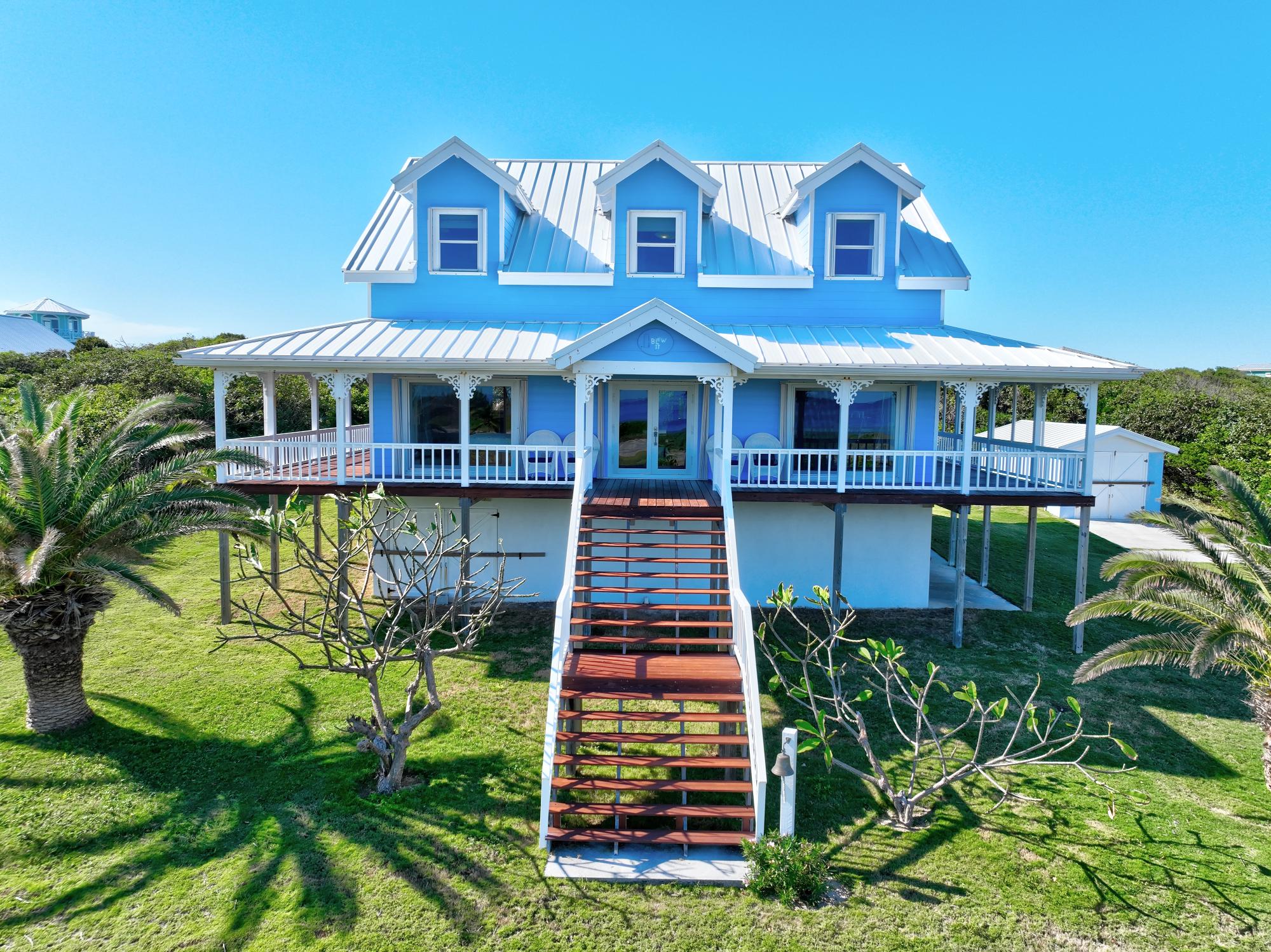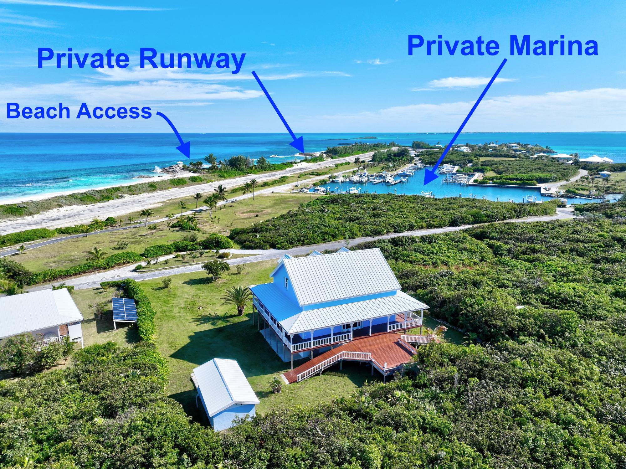 "Blew It", is a stunning Bahamian style cottage with breathtaking views! This 3 bedroom 2.5 bathroom is appropriately placed up on a bit of a "perch" on a spacious open lot boasting 22,889 square feet. The wrap around covered porches are a favorite spot to enjoy all times of the Bahama breezes and from the front viewing deck you can watch the action of the planes departing and arriving while taking in the fresh Atlantic air! There are two well protected slips that are included in the sale, one at 50 feet and one at 30 feet and are amenities that are in hight demand. There is a 30 KW standby generator that can run the entire property if and when needed and ample water storage at 30,0000 gallons. A golf cart ramp up to the main level makes arrivals, departures and long days of boating a breeze. There is a very large garage and storage area below on the ground level that can be converted into more living space and or kept the way it is for all of your "toys". Speaking of toys, there is a industrial size ice maker already in place for the boating and fishing enthusiast! Don't miss out!