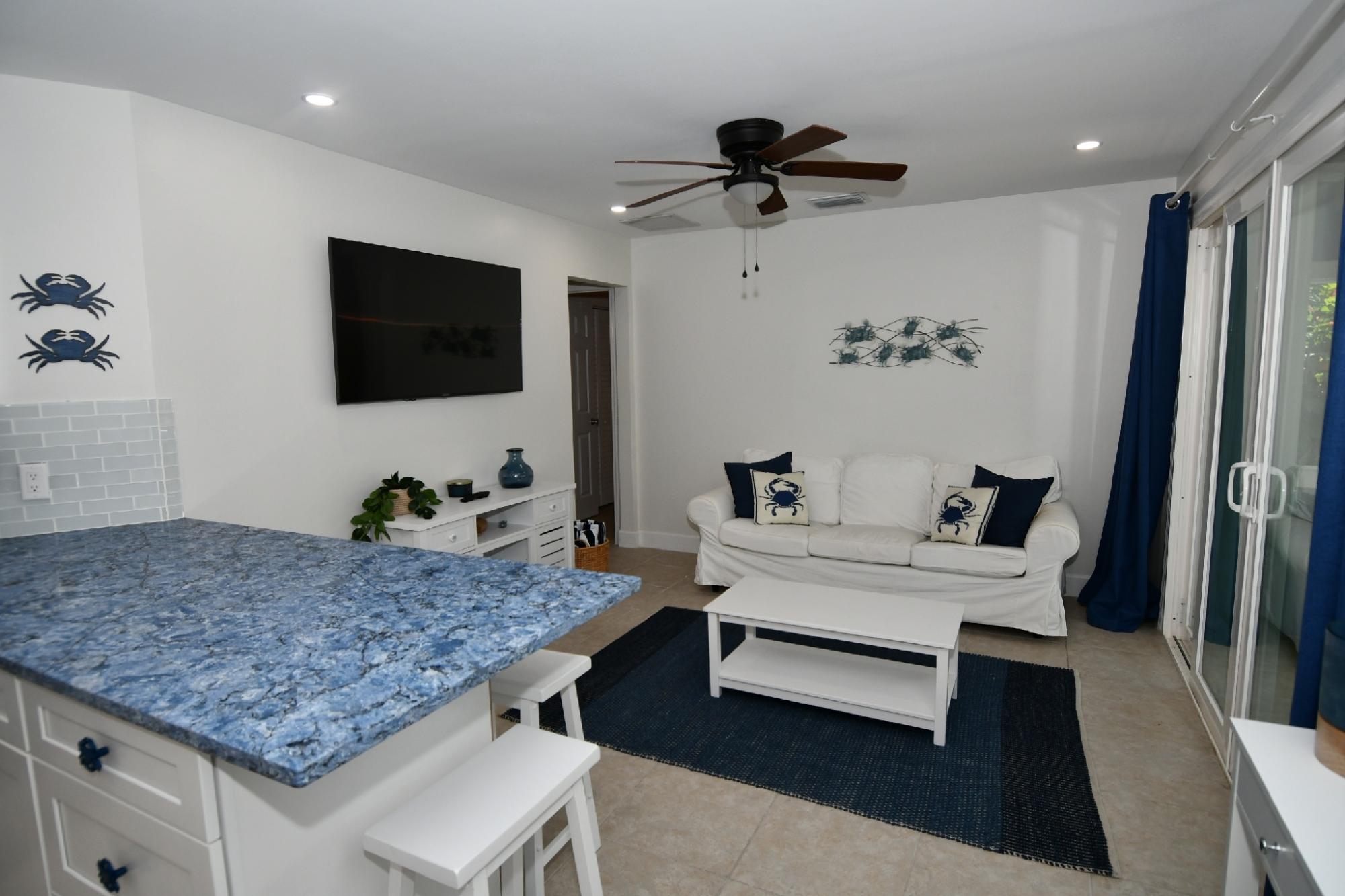 Blue Crab Beach Villa # 501 is an attractive 2 bedroom 2 bath fully furnished "turn-key" Villa, tastefully decorated and furnished villa offers a spacious 832 sq. ft. of comfortable tropical island living space under air. It also boasts a pleasant open concept kitchen, living and dining area in addition, large sliding glass doors leading to a large screened in lanai. This newly renovated and inviting villa has been in a vacation rental pool and presents itself well. Located in the popular Beach Villas complex within the gated residential community of Treasure Cay, Abaco, Bahamas and just a couple of minute walk to the Treasure Cay Beach, voted "One of the top ten beaches in the world" by National Geographic. This exceptional villa is situated on a corner lot, providing a comfortable degree of privacy. This villa is just a short walk from Treasure Cay Beach, the Beach Villas community pool, boat rentals and Treasure Cay's main commercial area comprising of retail shops, restaurants, library, & medical clinic. 30 minute drive to Marsh Harbour for shopping and International airport MHH.