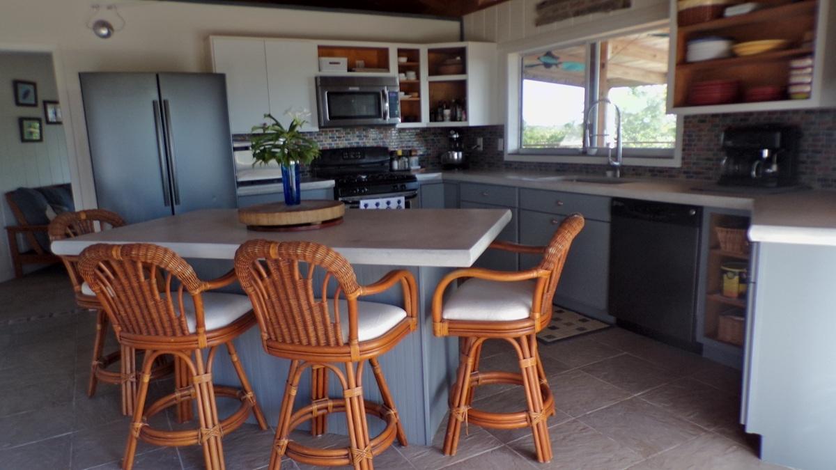 This spacious home along with a guest cottage sits in a tropical low maintenance setting with walkways between the homes where there is a hidden sundeck and garden area. This is a custom built 6-sided raised home with 360 degree views of the surrounding area including water and sunrise/sunset views. There are 2 bedrooms, 2 bathrooms, office/extra bedroom with an open plan Kitchen, dining and living room. Ceilings are open beam with a windowed cupola, and ceiling fans. A screened in area with plenty of seating, an outdoor bar and a 7 person hot tub sits in the perfect location for the right mix of sun, shade and breeze. The ground level has a 2-car covered carport, with an additional 1,200 sq. ft. workshop, mechanicals, laundry, a bonus room with 1/2 bath. There is an 18,000 gallon cistern with plenty of storage above. The guest cottage is 600 sq. ft. with 1 bedroom, 1 bathroom, an open kitchen, dinning and living room. A screened front porch for enjoying the tropical breeze while relaxing in your hammock. There is also an outdoor shower and a 5,000 gallon cistern.
