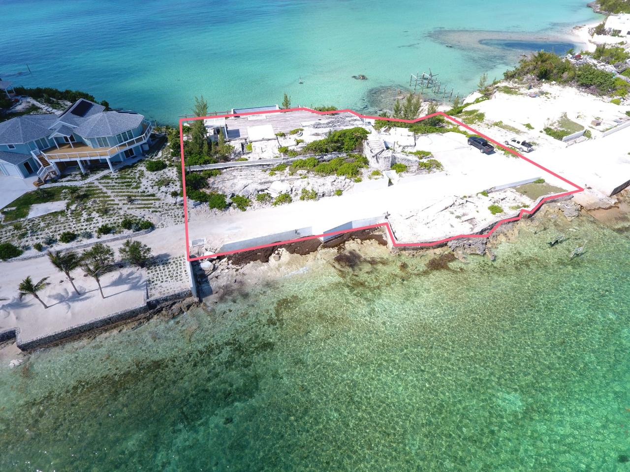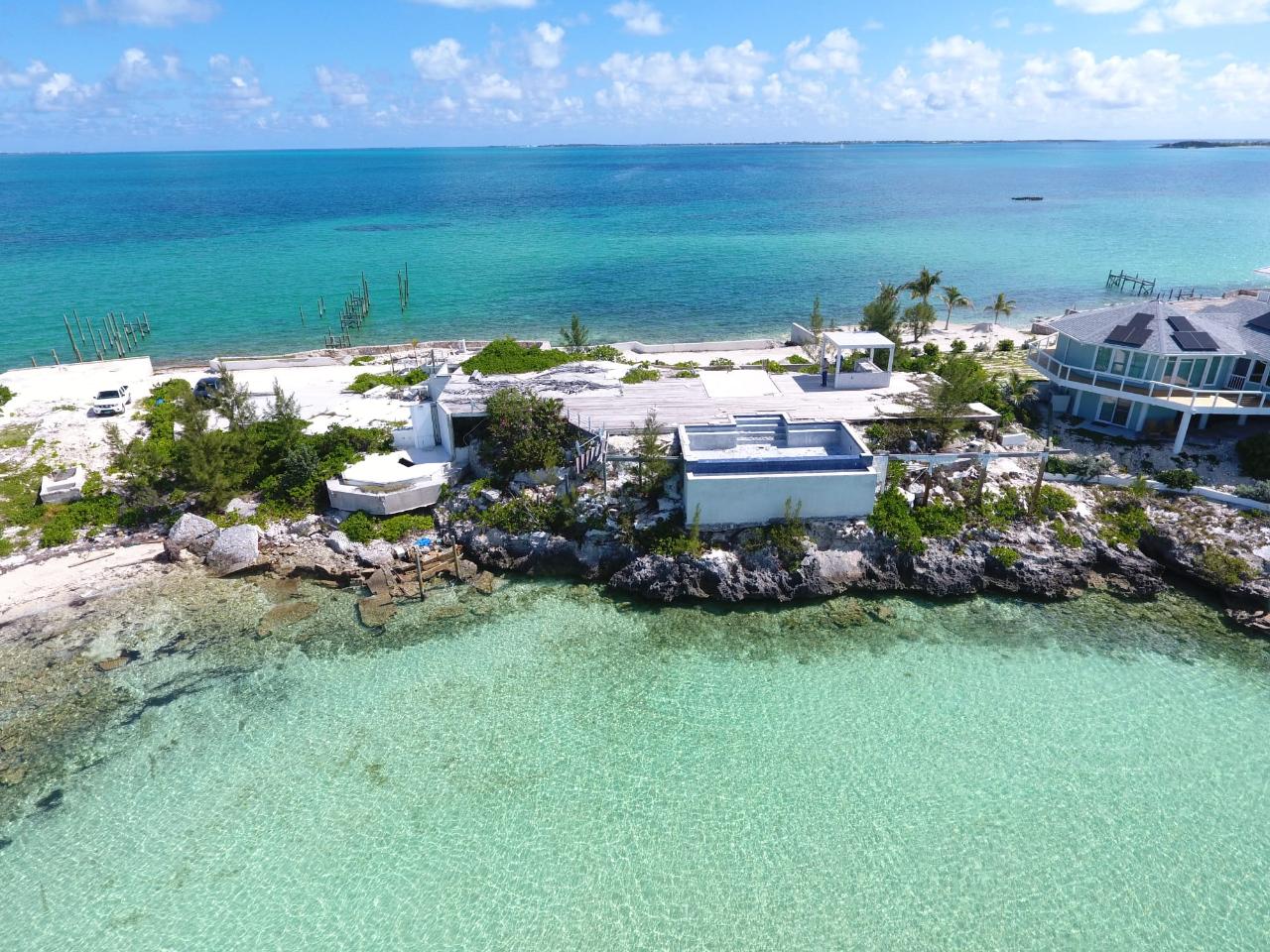 Stunning Calypso a Sea to Sea 24,300 sq. ft. property on Eastern Shores peninsula Marsh Harbour Abaco offering 208 feet of waterfrontage on the north side and 168 feet of waterfrontage on the south side with amazing sea views to the north and south. The home was destroyed in hurricane Dorian in September 2019. A new 100-foot dock with 20x20 covered deck, boat lift, infinity pool and large pool deck was completed one week prior to Dorian. The dock, infinity pool and decks are easily repaired and 20% of the main house at pool/deck level remains and could be built on again. The north side native stone sea walls are intact as many other walls, and the concrete parking area is also in good condition. Please do not enter the property without being escorted by the listing agent for liability reasons.