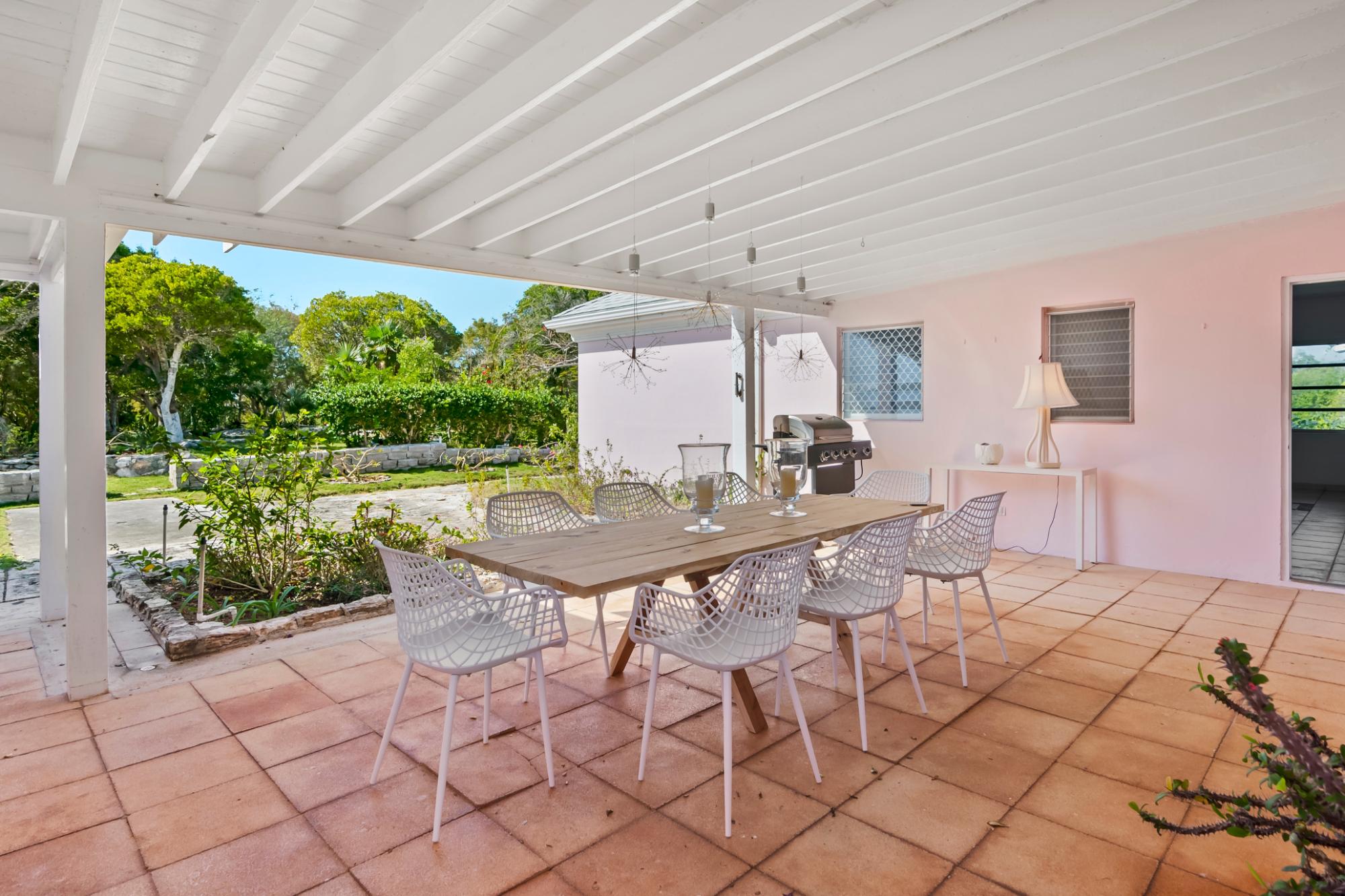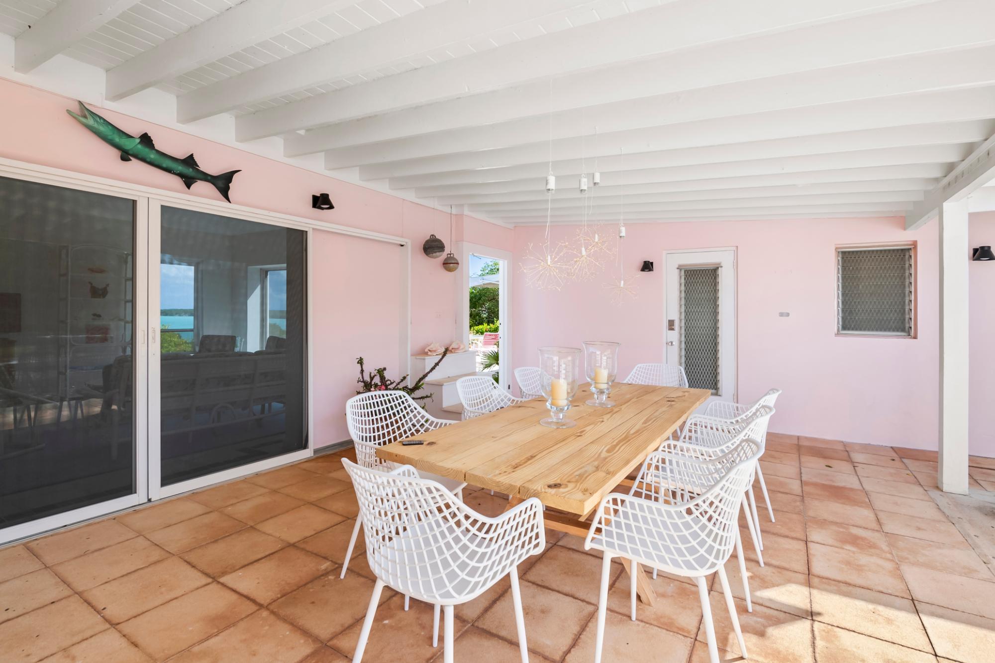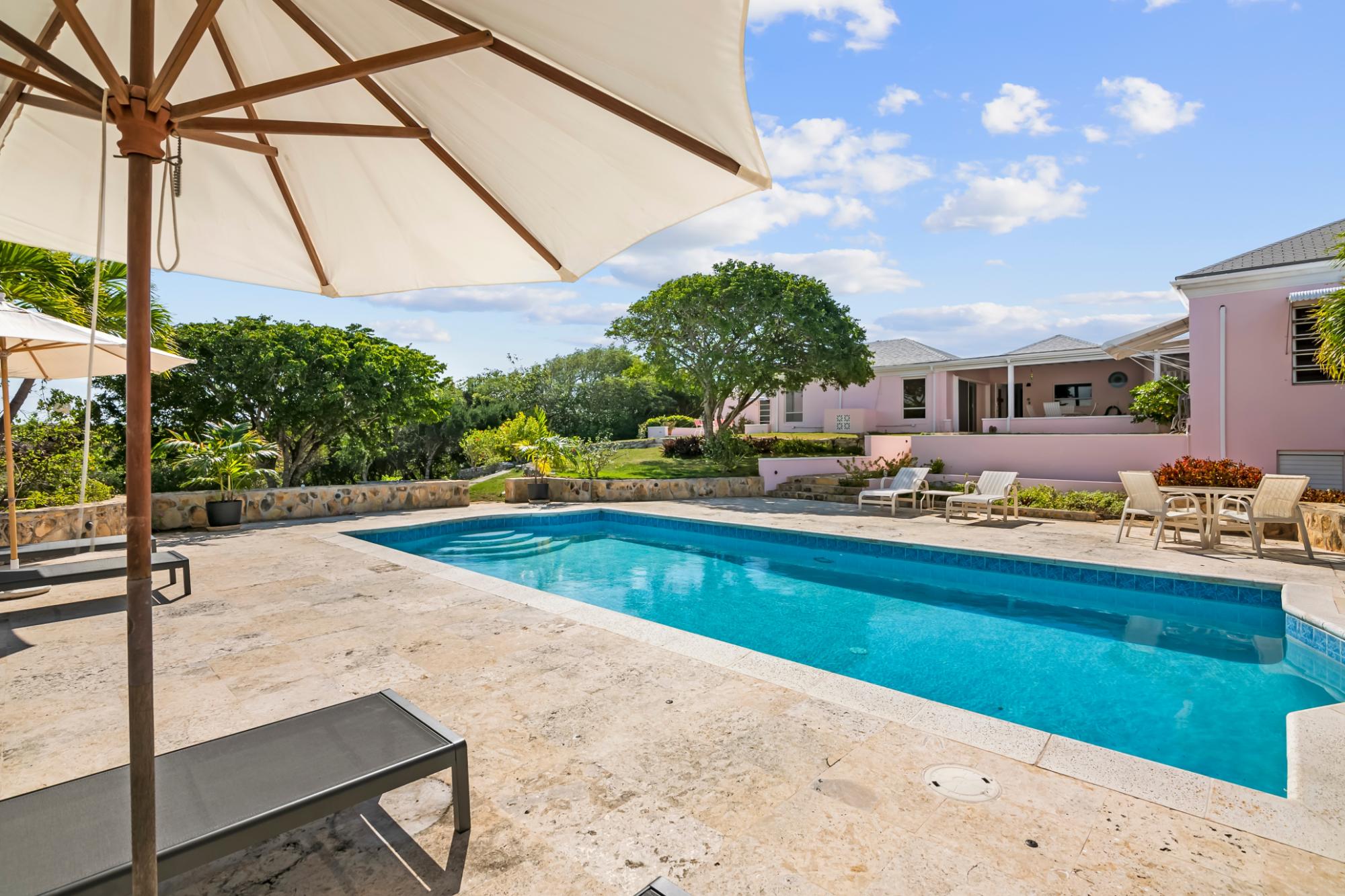 Perched atop a hill on Caravelle Road in George Town, Exuma, The Pink House sits on 1.52 acres of mostly flat land with lush gardens and fruit trees. Enjoy sunrise-to-sunset panoramic views over turquoise waters, including Elizabeth Harbor, Crab Cay, and February Point. Ideal as a primary residence, vacation retreat, or investment, the estate offers rare privacy with convenience. The 3-bedroom, 3 full and 2 half bath home features an open living and dining area designed to capture cooling island breezes and flow seamlessly outdoors. Exterior amenities include three patios, an ocean-view pool, expansive deck, and outdoor showerâperfect for entertaining or relaxing. The kitchen features stainless steel appliances and generous workspace. Minutes from George Town, the property provides easy access to dining and shopping while remaining secluded. Five contiguous lots allow for expansion or future development. Schedule your private tour today!