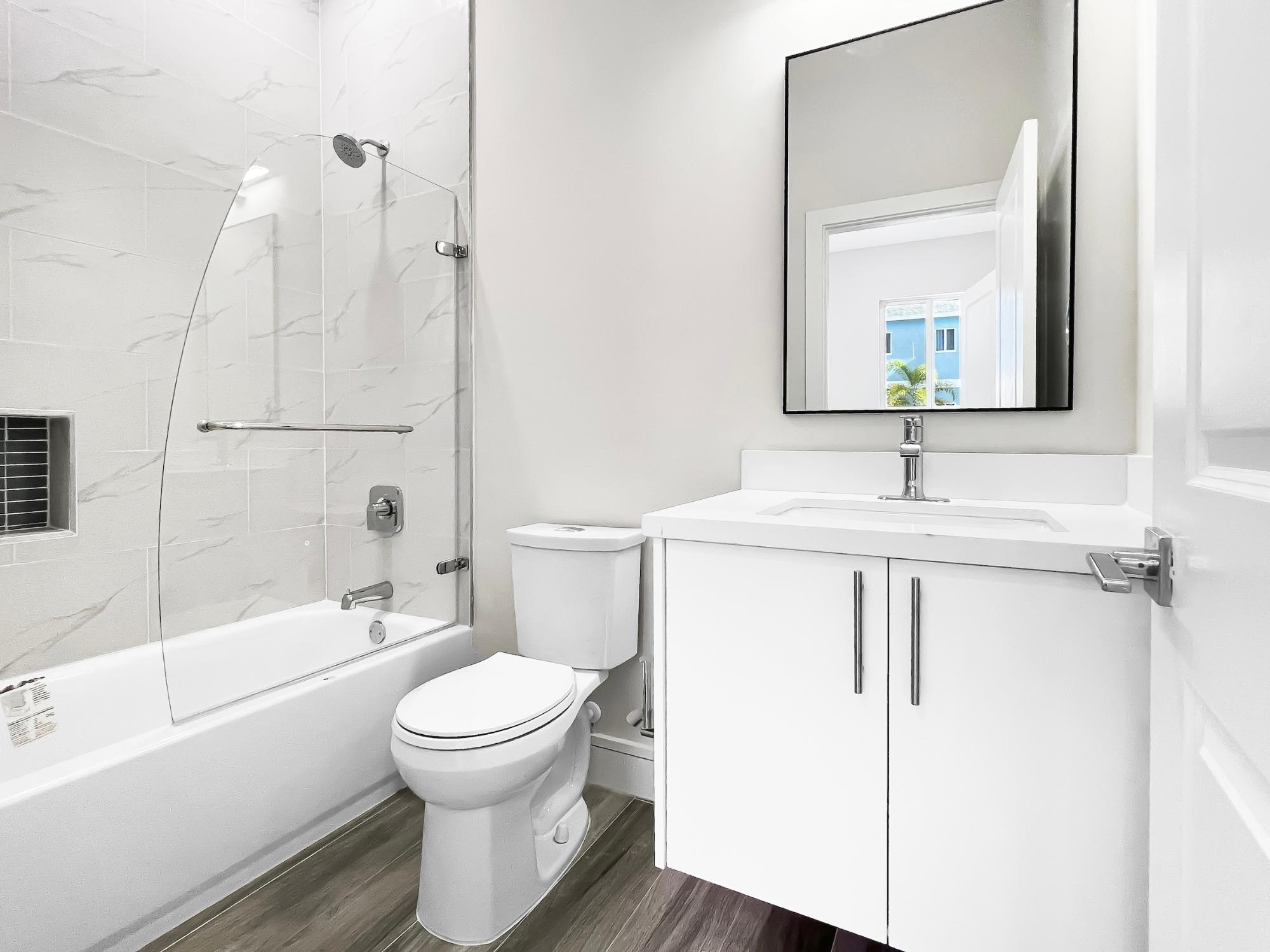 This brand-new rental, just steps away from the iconic The Islands Caves" and a pristine stretch of white sandy beachfront, is now available for rent. Offered fully furnished, the unit is located within the gated community of Caves Terrace, a section of the increasingly popular Westlake Plantation community. From the moment you walk through the impressive 8-foot entryway, you are welcomed into a contemporary interior featuring high ceilings and stylish modern accents. Each room is thoughtfully designed with generous space, built-in closets with shelving, and an abundance of natural light. The guest bedroom features a contemporary queen bed, while the primary suite offers a king bed, a spacious walk-in closet, and a well-appointed bathroom with dual vanities and a frameless glass walk-in shower. The primary bedroom also features tall impact doors that open onto the patio, creating approximately 250 sq. ft. of outdoor living space. With an additional seven units available for rent within the same complex, this property is an excellent option for companies or organizations