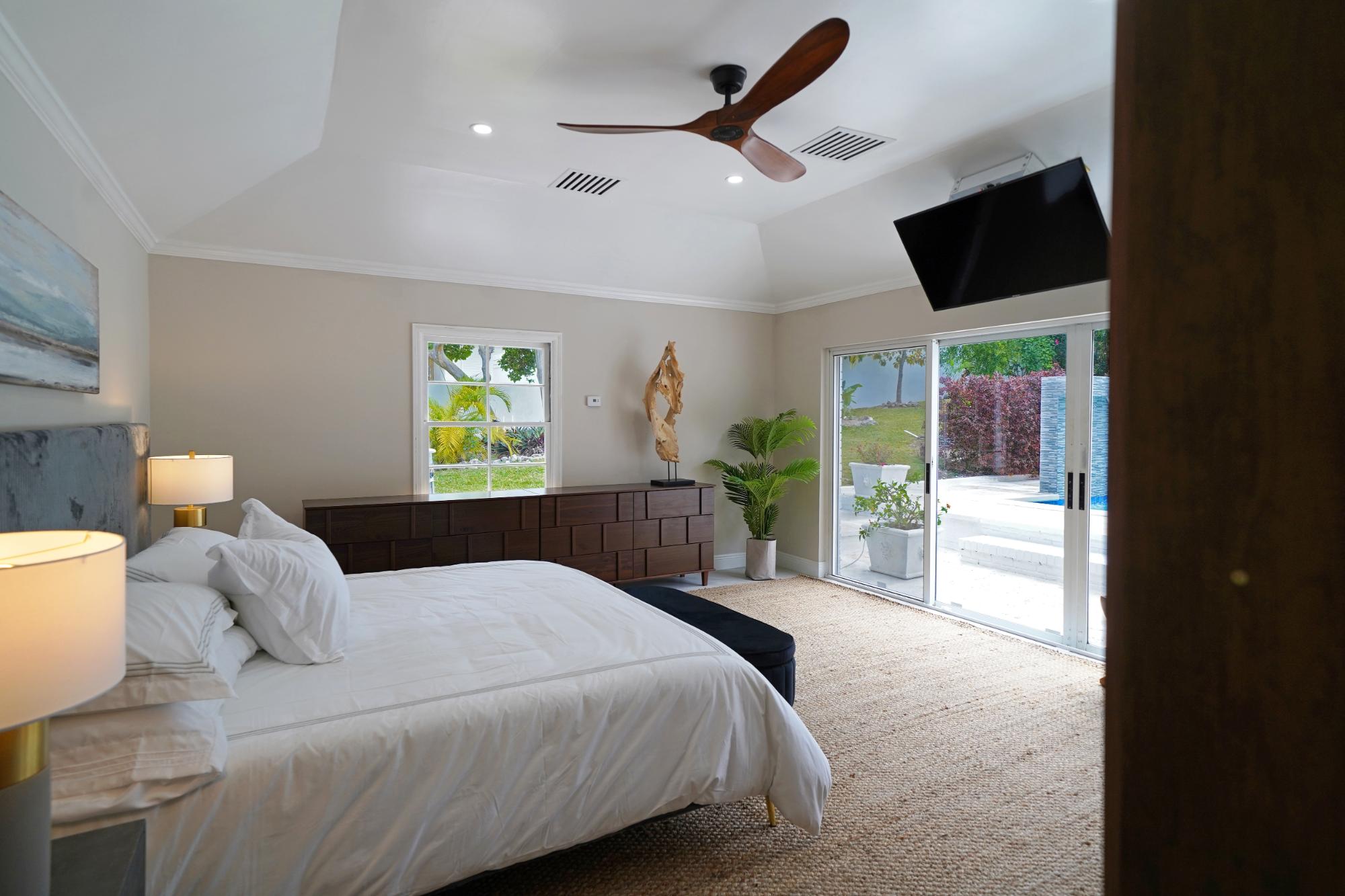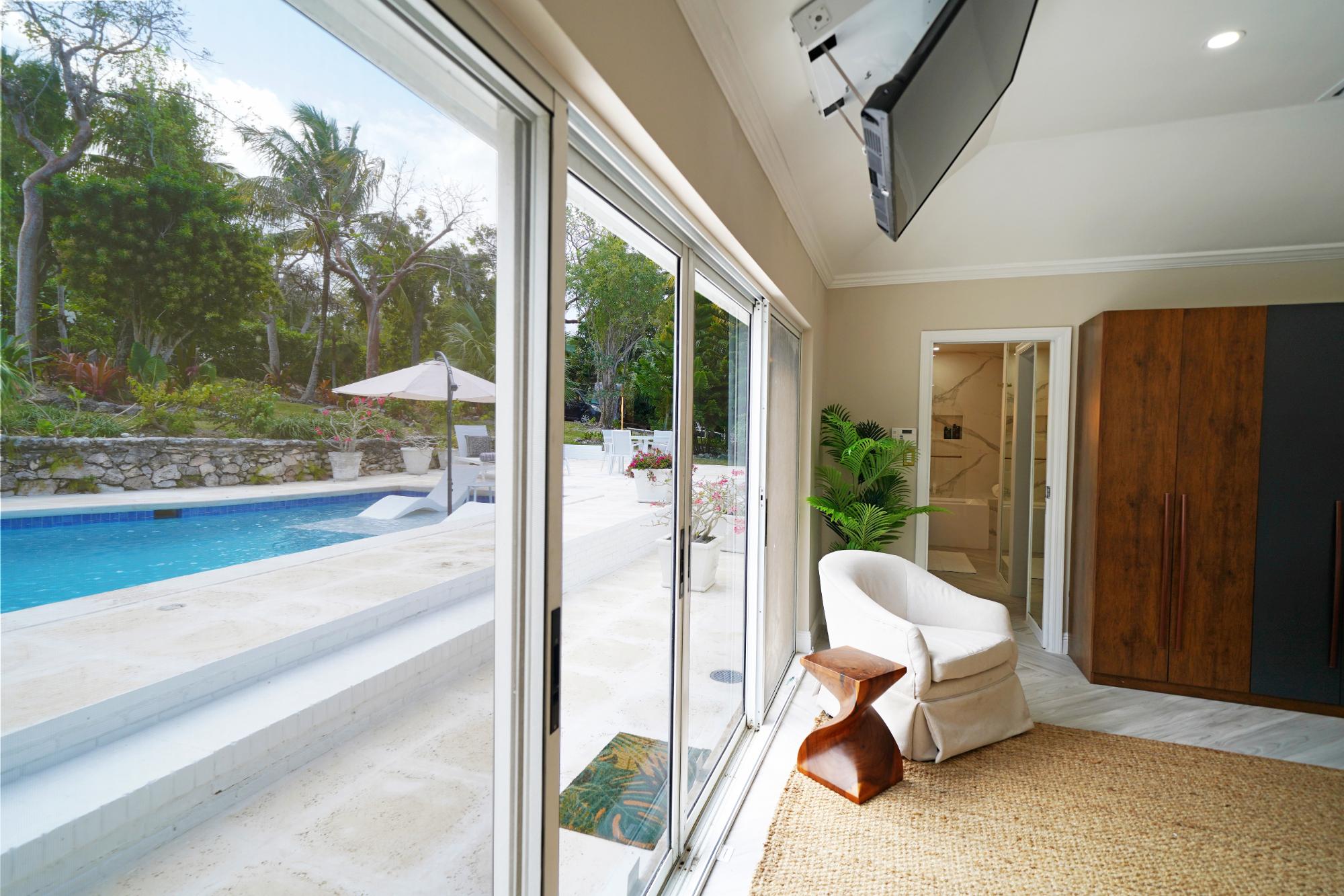 Introducing Cay Sera, nestled within the prestigious gated community of Lyford Cay in the vibrant western district of New Providence. This impeccably renovated residence boasts 4 bedrooms, 4 bathrooms, and a cozy den complete with a daybed. Set upon a generous 28,750 square foot lot, the home offers an open floor plan with large rooms and high ceilings. Step inside to discover a stunning modern aesthetic, with every detail meticulously curated for comfort and style. Adorned with all-new designer furniture, each space exudes sophistication and warmth. The heart of the home unfolds into a spacious open concept living and dining area seamlessly connected to a brand-new kitchen. Enjoy breathtaking views of the renovated pool with sun-pad, pool loungers and a waterfall feature. The large format windows offer views of the lush garden and pool area to the south with views over the canal to the north. This grand living space is perfect for entertaining or simply relaxing in luxury.
