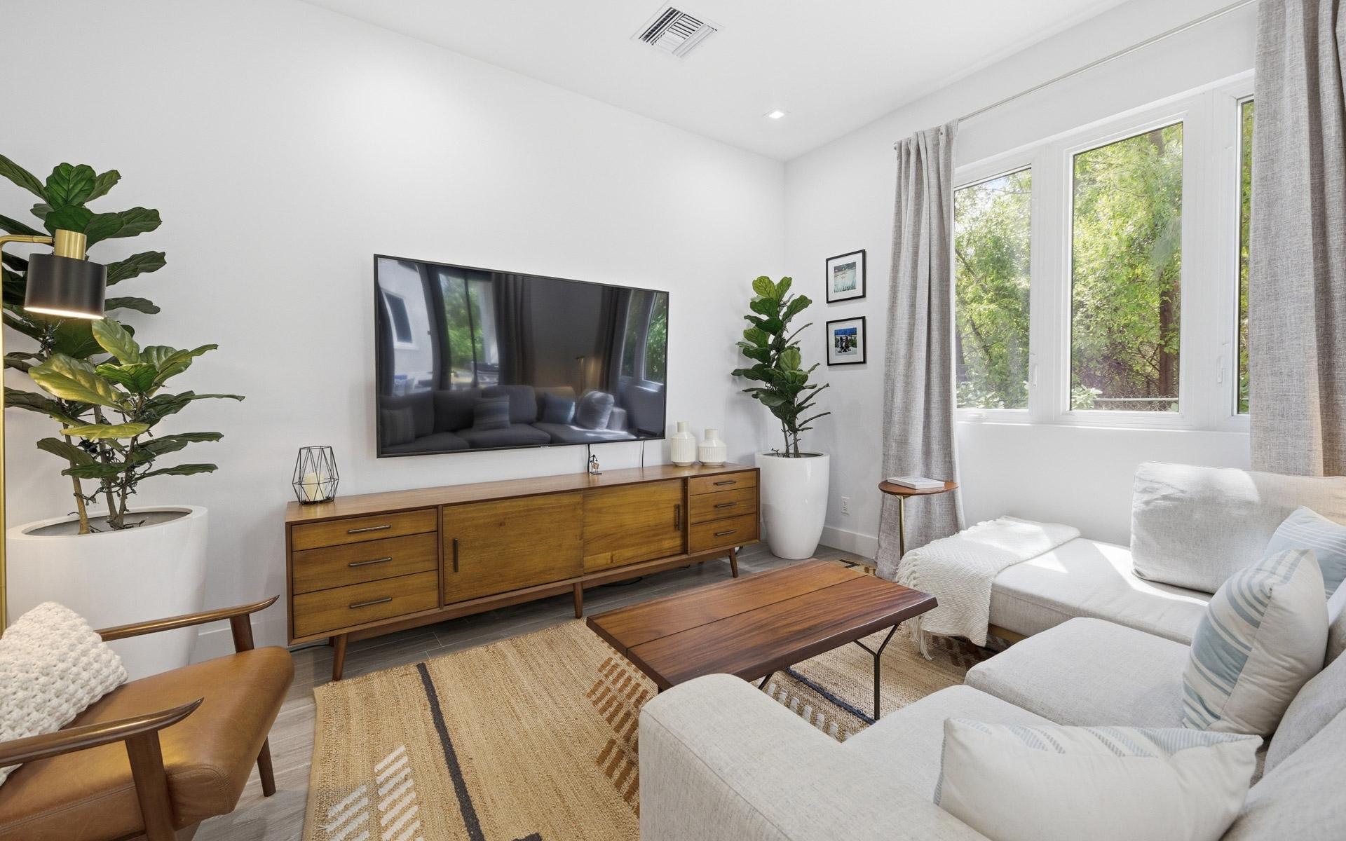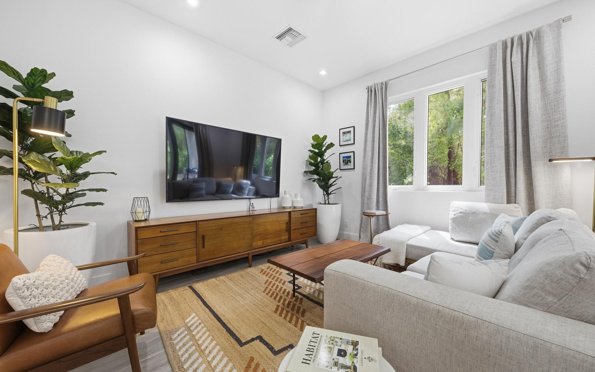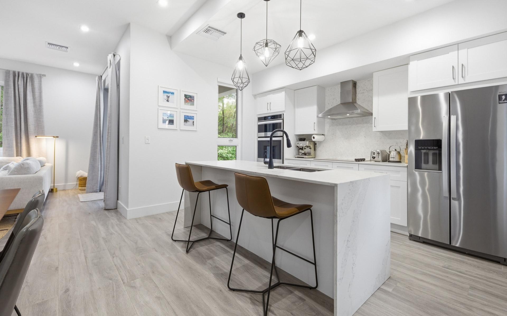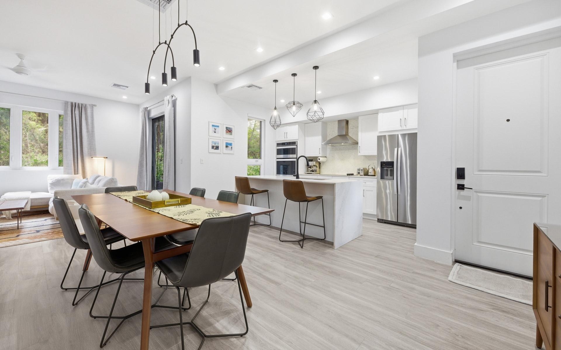 Discover modern island living in this bright two-bedroom, two-bathroom condo located in Building 1 of Coconut Cove. Offered semi-furnished, this stylish residence features high-end finishes, an open-concept layout, soaring ceilings throughout, and energy-efficient, impact-resistant windows and exterior doors. Additional upgrades, including a stone backsplash, bring modern convenience and style. The condo offers 1,198 sq. ft. of interior space plus a 206 sq. ft. covered veranda, totaling 1,404 sq. ft. of comfortable living. The thoughtfully designed layout includes separate living and dining areas and an open kitchen with a large island and Whirlpool appliances. A full back-up generator ensures peace of mind, while two allocated parking spaces and additional guest parking make hosting effortless. The primary bathroom includes a soaking tub, double vanity, and frameless glass shower, while both bathrooms feature sleek glass enclosures. Energy-efficient recessed lighting and high-efficiency central air conditioning provide comfort and efficiency throughout the home.