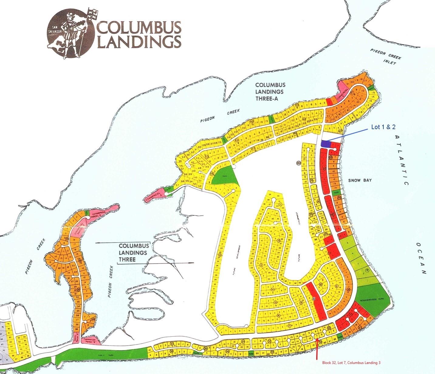 This affordable ocean view lot is located in Columbus Landings #3, near Pigeon Creek and Snow Bay, on the beautiful island of San Salvador â the easternmost island in the Bahamas. Itâs just a 45-minute flight from Nassau via Bahamas Air. Snow Bay is approximately a 40 to 45-minute drive from Cockburn Town, where you'll find the airport, hotels, bank, grocery stores, gas station, bars, and marinas.
