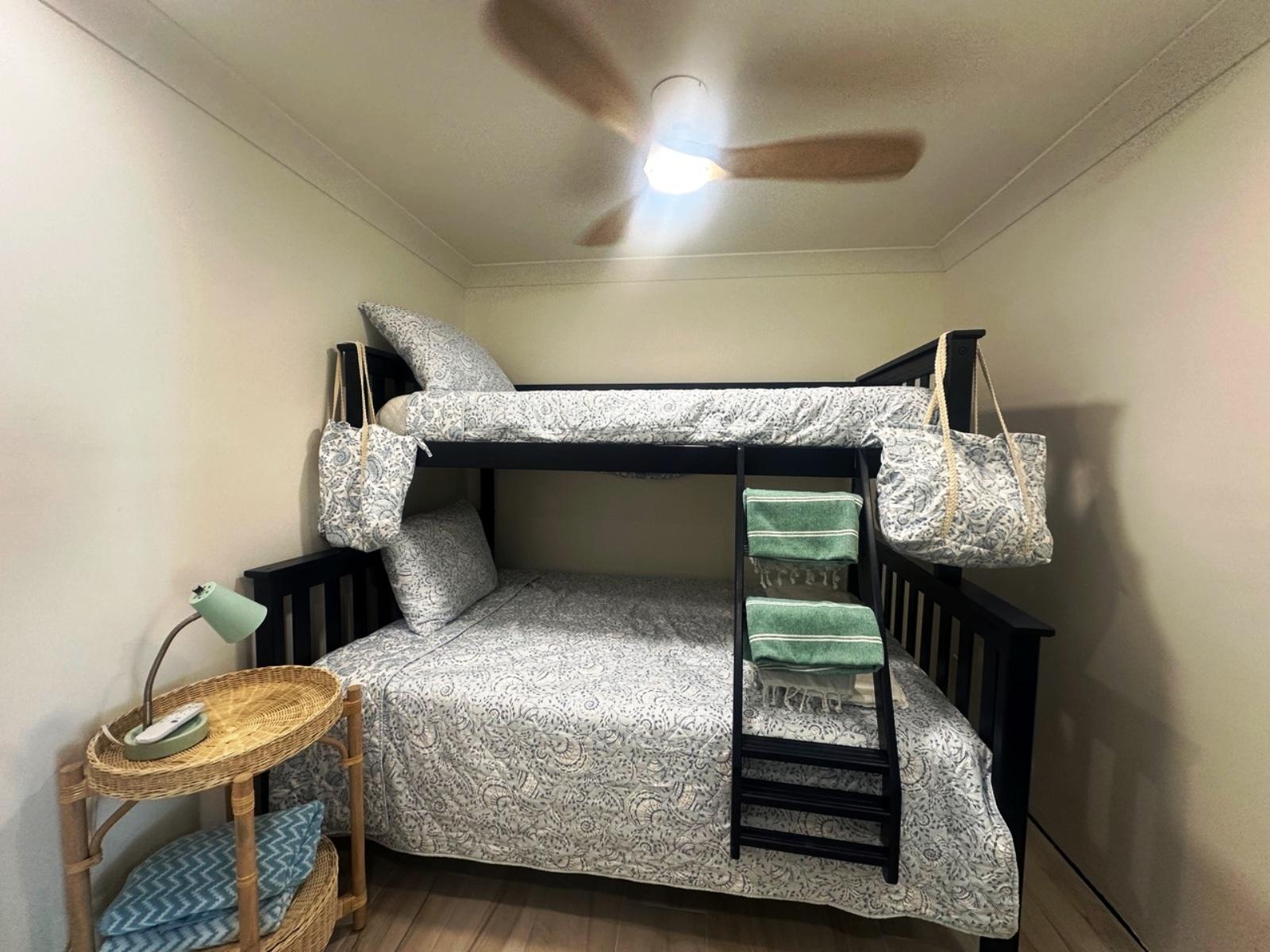 Welcome to this stylish and thoughtfully designed 2-bedroom, 1-bathroom condo, offering comfort, functionality, and modern finishes throughout. The home features a stunning custom blue shaker kitchen complete with stainless steel smart-technology appliances, including a refrigerator, stove, microwave, dishwasher, and quartz countertops. The open and inviting layout is enhanced by durable tile flooring throughout and high-efficiency central air conditioning. The unit comes fully furnished, featuring a spacious king bed in the primary bedroom and a twin-over-double bunk bed in the second bedroom, making it ideal for families, guests, or rental potential. Additional highlights include a convenient washer/dryer hookup, ample storage space, and a private outdoor porch â perfect for relaxing or enjoying outdoor living. Move-in ready and beautifully appointed, this condo combines modern convenience with comfortable coastal-style living.