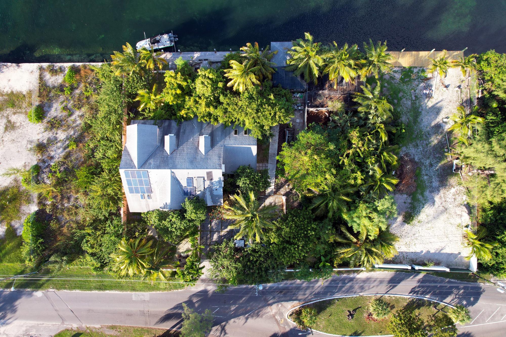 This is a unique investment property offering an extraordinary setting and infrastructure on one of the widest, most protected canals in Coral Harbour. The estate is comprised of Lots 17, 18, and part of Lot 16, featuring a substantial 150-foot private dock with deep-water access. This large, private parcel provides the rare opportunity for a legacy project with both immediate utility and significant future potential. The existing residence is a functional, self-sufficient structure with solid foundational systems. It includes five bedrooms, a den, and 3.5 baths. The property is already equipped for modern off-grid living with a full solar power system, backup LP generator, and on-site hydroponic setup. It also features a mix of impact-rated and traditional shuttered windows, central and ductless AC, and a kitchen with gas appliances. With its multi-family zoning, the property holds excellent short-term rental income potential and offers ample space for future development or expansion, representing a versatile and strategic opportunity.