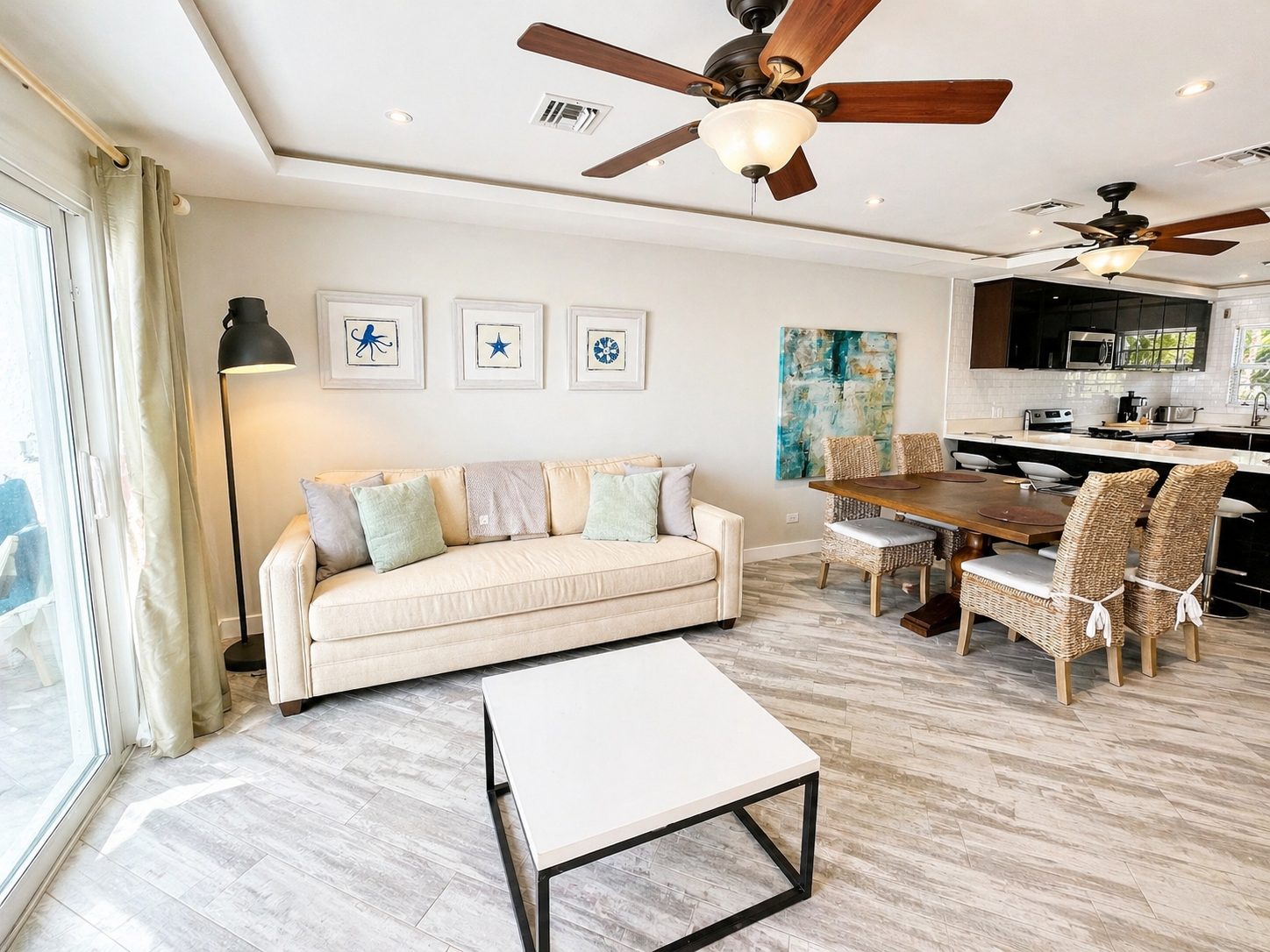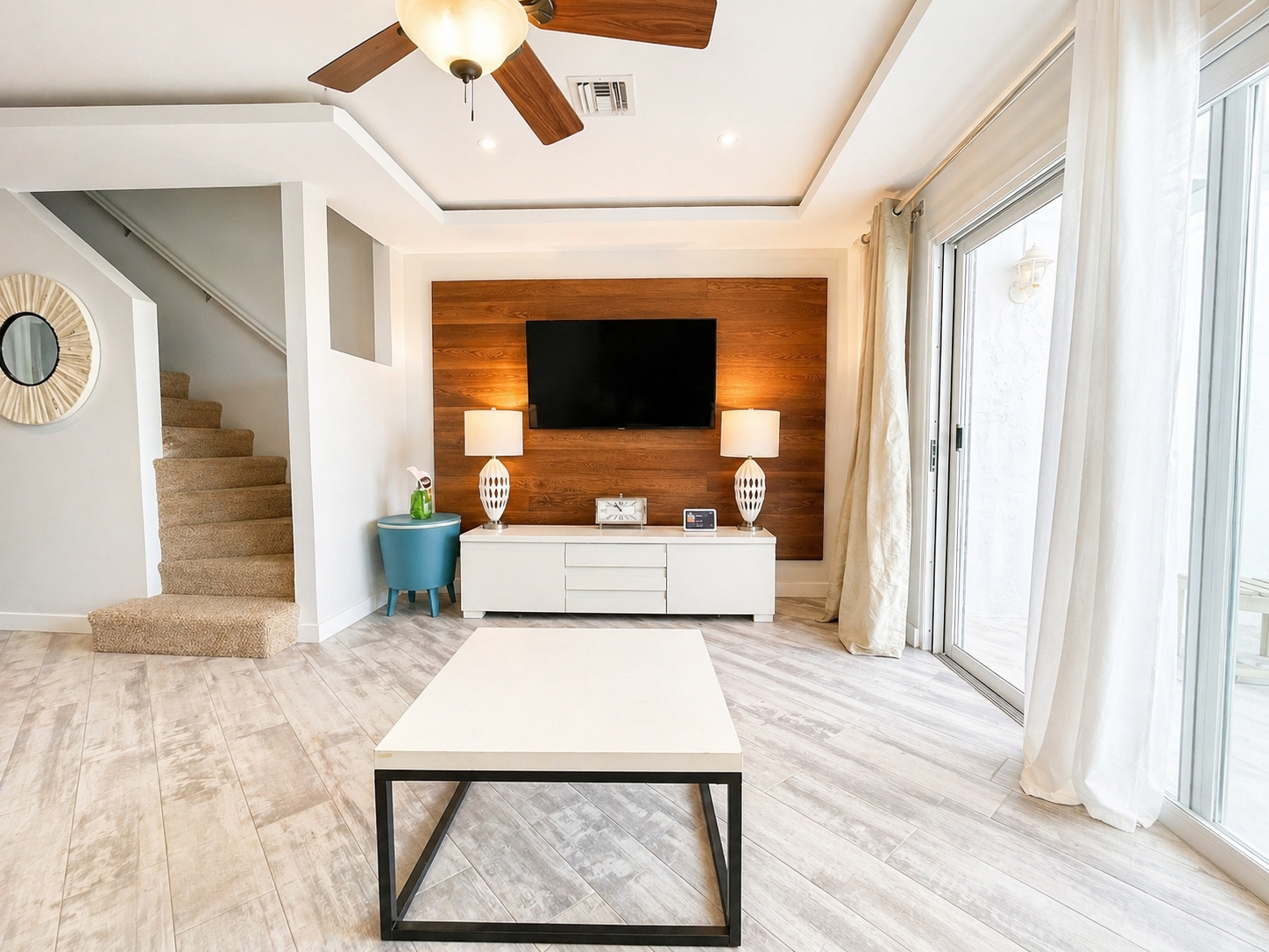 A luxurious, recently upgraded, turn-key 3 bed 3 1/2 bath townhouse with spectacular sunset views. This property provides 2 parking spots and is a tastefully furnished, three-story townhome featuring a first-floor open plan kitchen, living/dining area, powder room and laundry. The ground floor terrace and master bedroom balcony have spectacular western views affording stunning sunsets and great views over the turquoise sea. The Delaporte Point community features complete privacy and landscaped surroundings in a gated community with on-site around the clock security. It also has its own beach and two swimming pools. Located only minutes from the Cable Beach strip in Western New Providence, this modern Townhouse offers easy access to hotels, restaurants, shopping and the International Airport.