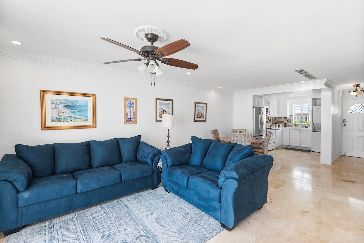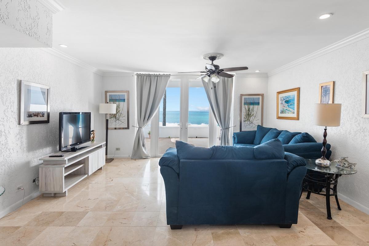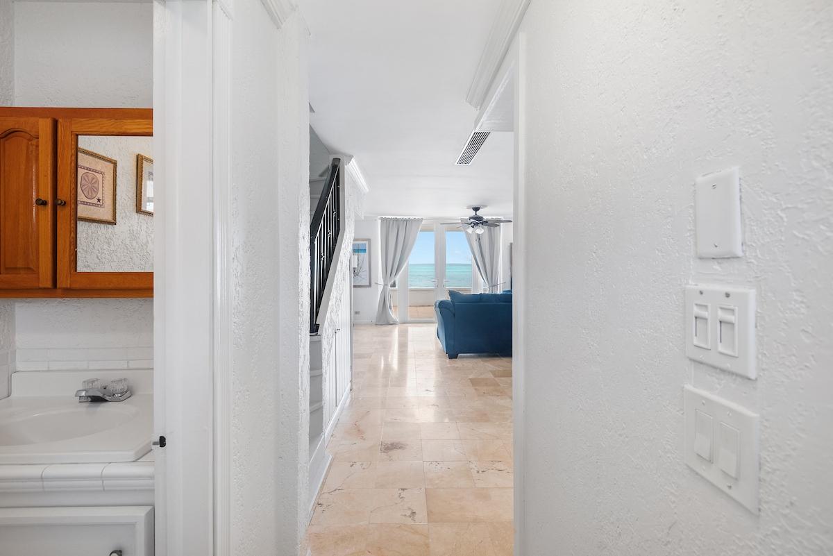 Perched along the shoreline within the exclusive Delaporte Point gated community, Unit 40 is an oceanfront rental offering turquoise views, direct beach access, and 24 hour security in a highly desirable waterfront setting. Designed for relaxed island living, this 3 bedroom, 3.5 bathroom residence features hurricane impact doors that open to a private oceanfront patio, creating seamless indoor outdoor flow. The open living and dining area offers a spacious, functional layout suited for everyday living and casual entertaining. Each bedroom is well proportioned and paired with its own bathroom, providing privacy and flexibility for residents and guests. The kitchen includes ample cabinetry, full size appliances, and generous counter space for daily use. An in unit washer and dryer add convenience. Residents enjoy two pools, manicured grounds, and a tranquil beachfront setting just steps from the sand. This oceanfront rental offers comfort, security, and resort style amenities in a peaceful coastal enclave. Experience the pinnacle of island living. Schedule your private tour today!