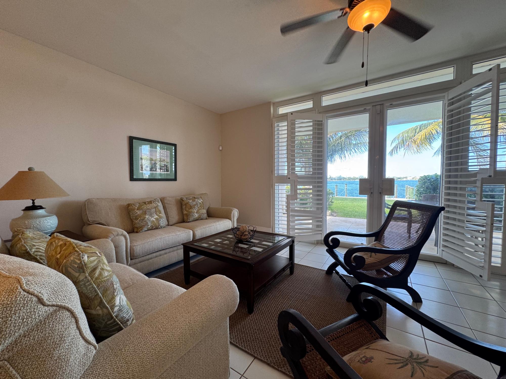 Waterfront Condo at Dickâs Point Experience island living in this elegant 3-bedroom, 3.5-bathroom waterfront residence located in the exclusive Dickâs Point community. Designed for comfort and sophistication, this condo offers an expansive open-concept living and dining area that seamlessly flows onto a covered patio, capturing serene views of the water. The residence features three well-appointed ensuite bedrooms, including a spacious primary suite with panoramic vistas and abundant natural light. The modern kitchen and airy interiors create a perfect blend of luxury and functionality, ideal for both relaxed living and stylish entertaining. Enjoy premium amenities including boat dockage, a community swimming pool, and tennis courts, all within a secure, private enclave. Situated just minutes from Nassauâs finest beaches, marinas, and restaurants, this property offers the ultimate in island elegance and convenience.