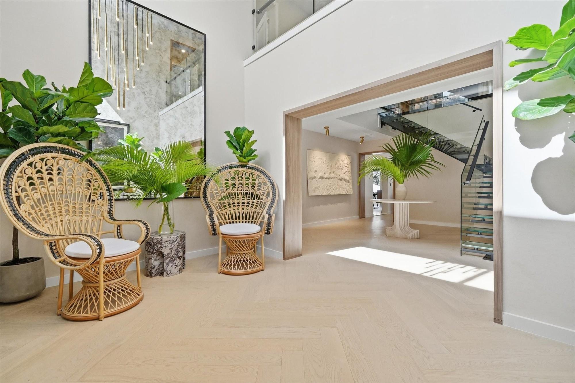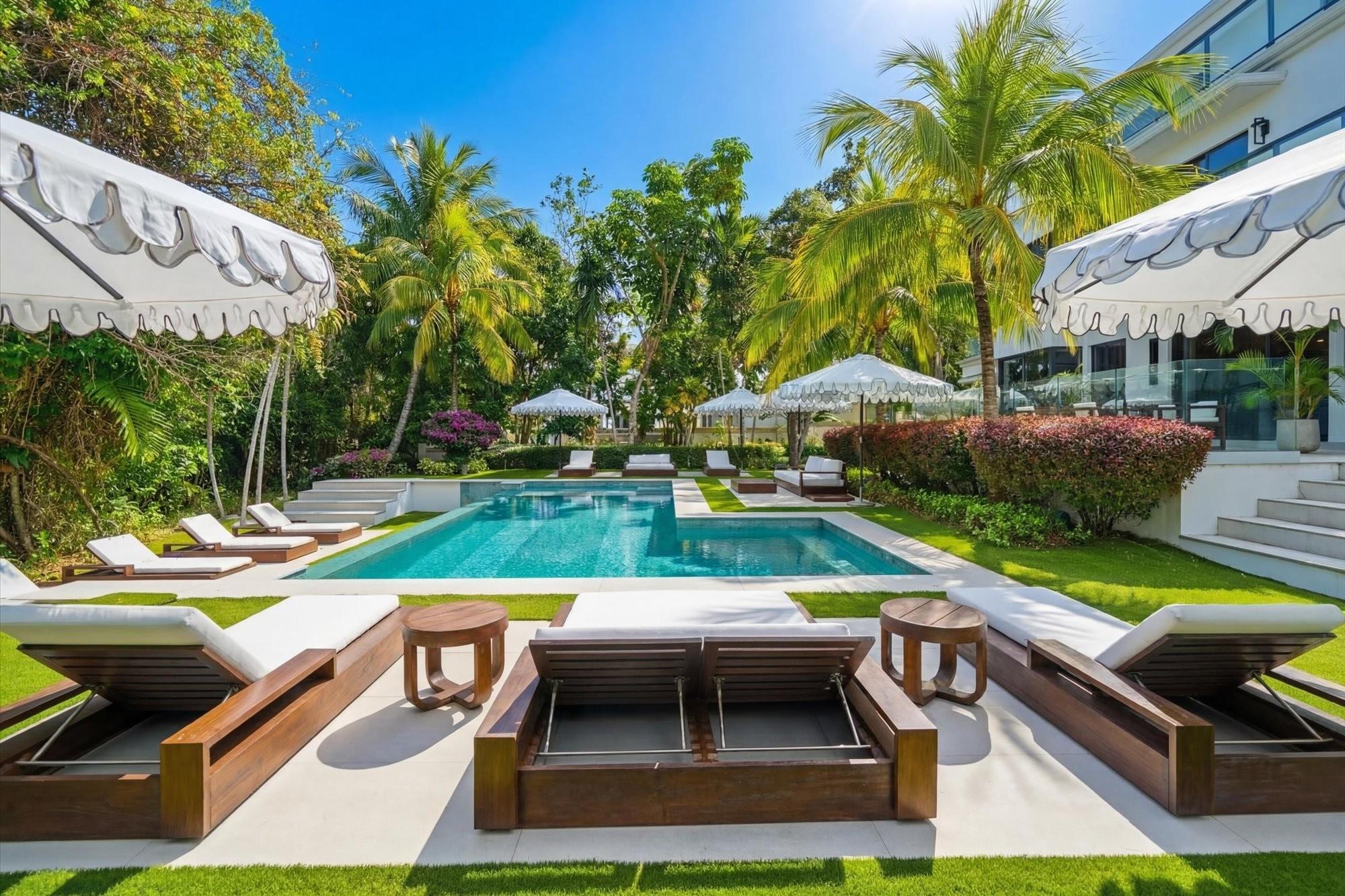 Positioned on an elevated, maturely landscaped lot, the 7,200 sq. ft. main house offers 5 bedrooms and 5.5 bathrooms. Interiors are composed of imported limestone, travertine, onyx and rift-sawn white oak floors, bespoke millwork and artfully diffused lighting. On the ground floor, a striking double-height living room opens to the pool terrace and gardens, complemented by a formal dining room, kitchen and breakfast area, family room, study, gym and two guest suites, along with a laundry, staff bath and 2.5-car garage. Upstairs, the primary suite occupies a private wing with an expansive sunrise terrace, while two guest rooms open to wraparound verandahs beside an intimate library. A third-floor media room and broad terrace capture elevated sunset and sea views over Clifton Bay. A separate 500 sq. ft. cottage, extensive terraces and full backup systems complete this meticulously executed modern island home. Offered fully furnished.