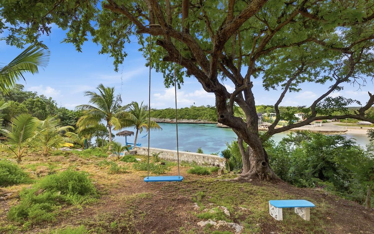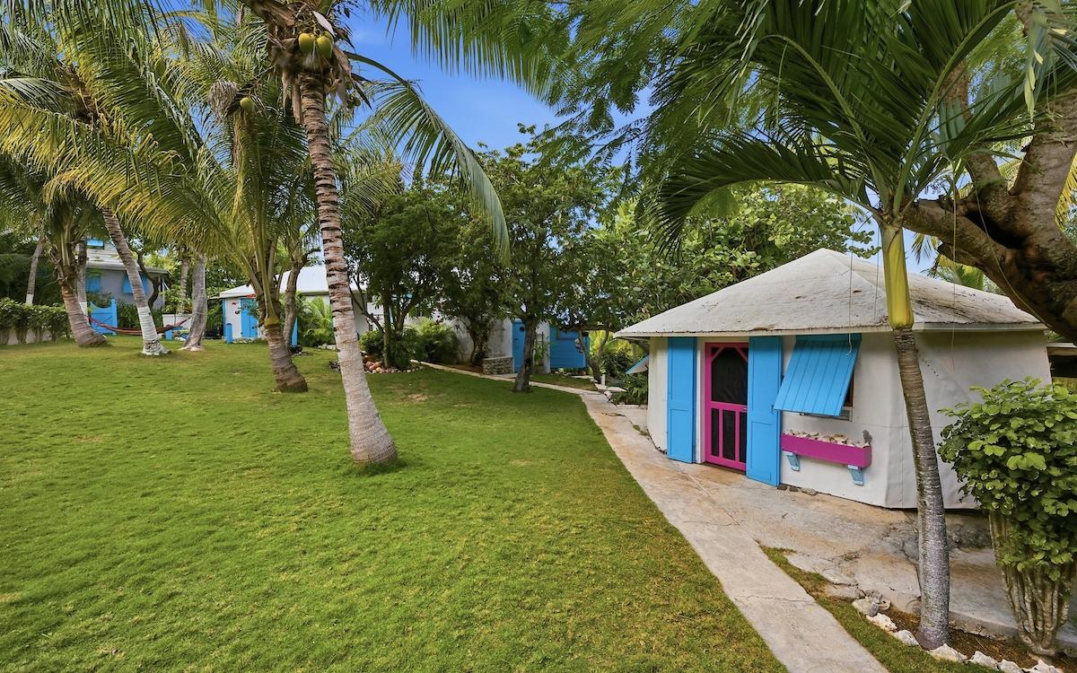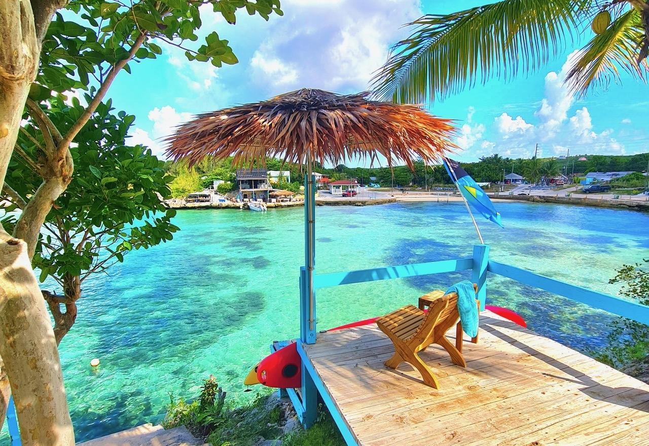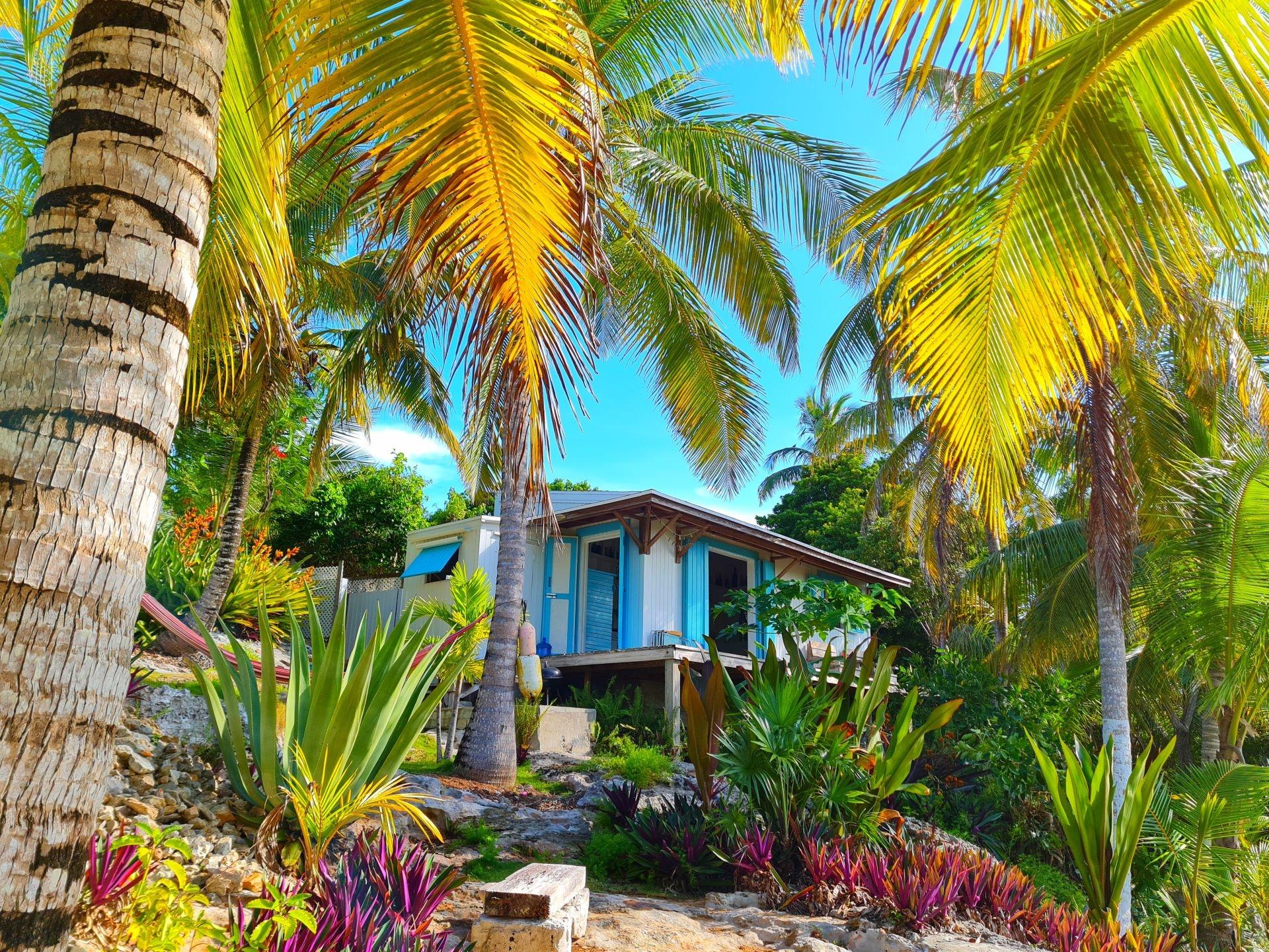 Historic waterfront properties of this caliber rarely become available. As featured in The New York Times and the Lonely Planet Guide to the Bahamas, Edge of the World Properties is a beloved and storied retreat nestled among century-old coconut palms along the waterfront of the Gregory Town cove. Owned by a descendant of the famed Captain Sprague, this remarkable property has remained in the same family for generations and radiates authentic Bahamian character, heritage, and timeless appeal. Remnants of history, including a large anchor and pirate cannon, can be found among the gardens, quietly preserving its seafaring legacy. Situated on a generous waterfront parcel with 100 feet of cove frontage, the estate offers a rare blend of history, privacy, and proven income potential. The property includes a two-bedroom, two-bath main residence and three charming, income-producing guest cottages, thoughtfully arranged to provide both privacy and flexibility. Stone steps lead from the property down to the calm Caribbean waters below, offering easy access for swimming and paddleboarding