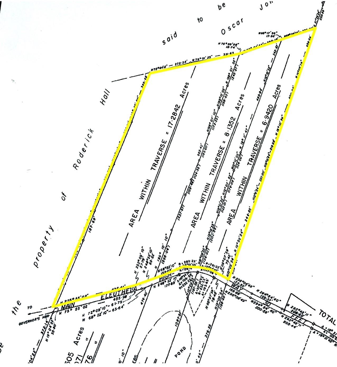 Situated one mile south of Governorâs Harbour on the east side of the Kingâs Highway this 32.35 tract has elevations up to 100 feet. Property is ideally situated for land development with spectacular sea views and elevations. All utilities are on the Highway. There is an adjacent 72.54 acre tract to the south for sale. Eleuthera is situated approximately 50 miles east of Nassau at its nearest point. It was settled in 1648 by the Eleutheran Adventurers â a band of English Puritans who left Bermuda in search of religious freedom. They named the island Eleuthera, which means Freedom (Eleftheria in Greek). The Adventurers founded what was probably the first democracy in the western world. Eleuthera is over 100 miles long and has lots of gorgeous pink and white sandy beaches, mainly on the ocean (east) side of the island. Numerous settlements dot the island and two offshore islands âSpanish Wells and Harbour Island - lie off the northern end. Governorâs Harbour is considered the middle of the island and has the largest population. It houses the government administrative centre.
