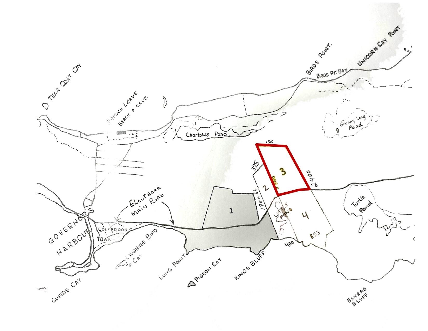 Situated one mile south of Governorâs Harbour on the east side of the Kingâs Highway this 72.54 acre tract has elevations up to 100 feet. Property is ideally situated for land development with spectacular sea views and elevations. All utilities are on the Highway. There is an adjacent 32.35 acre tract to the north for sale. Eleuthera is situated approximately 50 miles east of Nassau at its nearest point. It was settled in 1648 by the Eleutheran Adventurers â a band of English Puritans who left Bermuda in search of religious freedom. They named the island Eleuthera, which means Freedom (Eleftheria in Greek). The Adventurers founded what was probably the first democracy in the western world. Eleuthera is over 100 miles long and has lots of gorgeous pink and white sandy beaches, mainly on the ocean (east) side of the island. Numerous settlements dot the island and two offshore islands âSpanish Wells and Harbour Island - lie off the northern end. Governorâs Harbour is considered the middle of the island and has the largest population. It houses the government administrative centre.