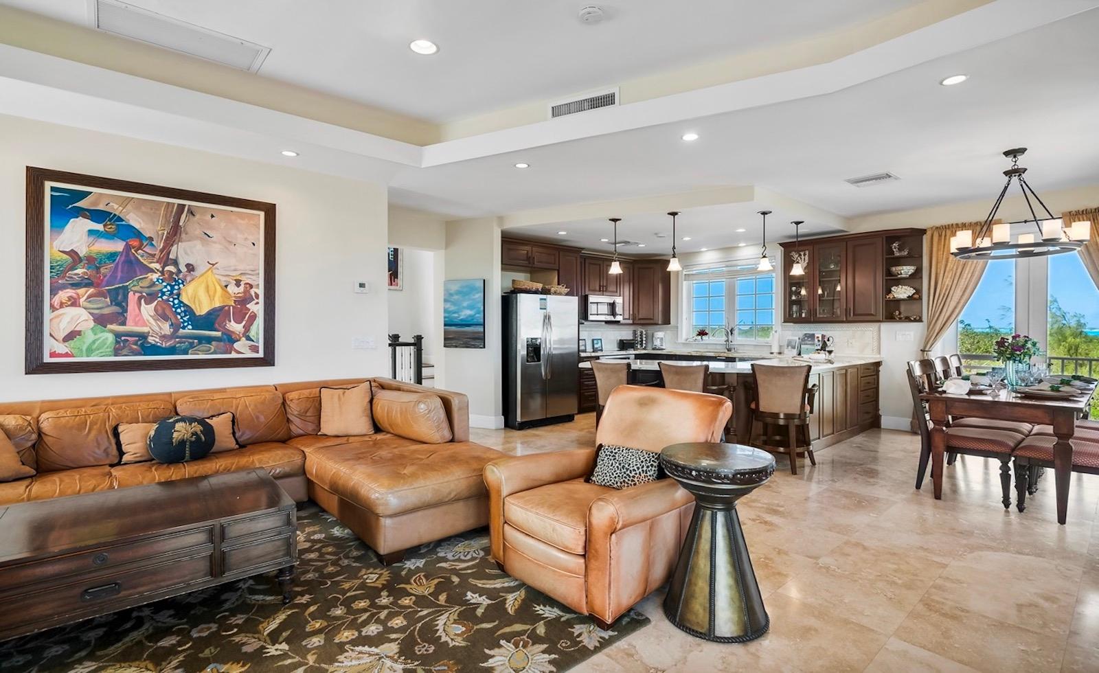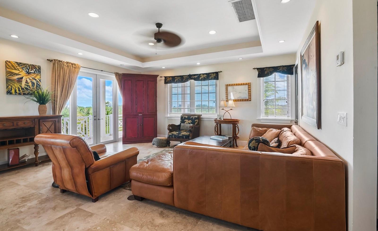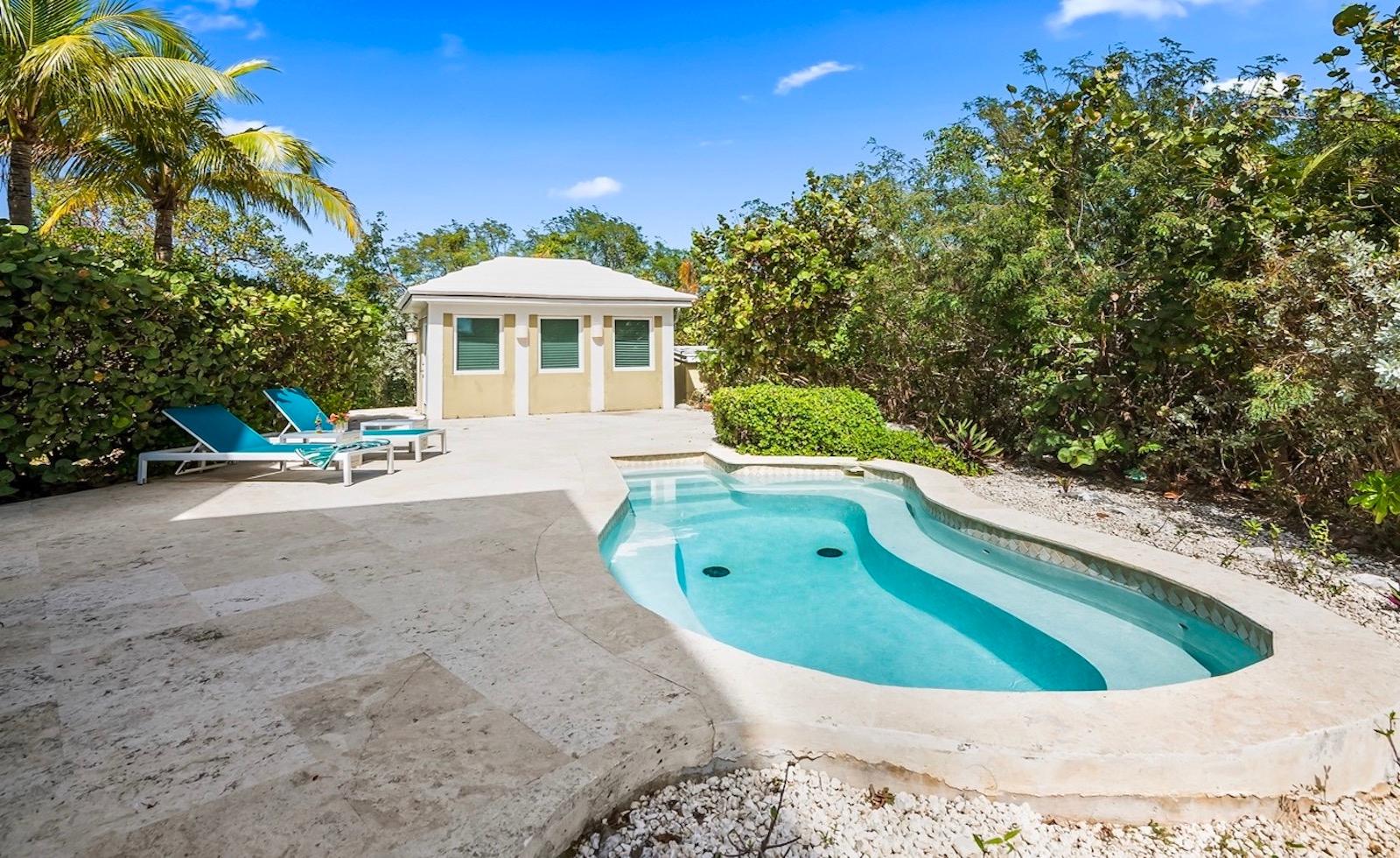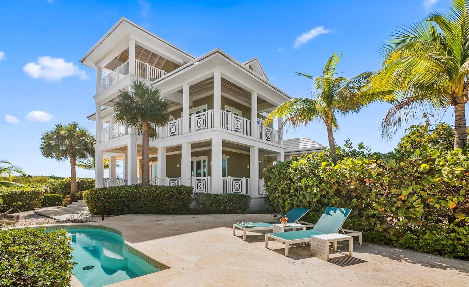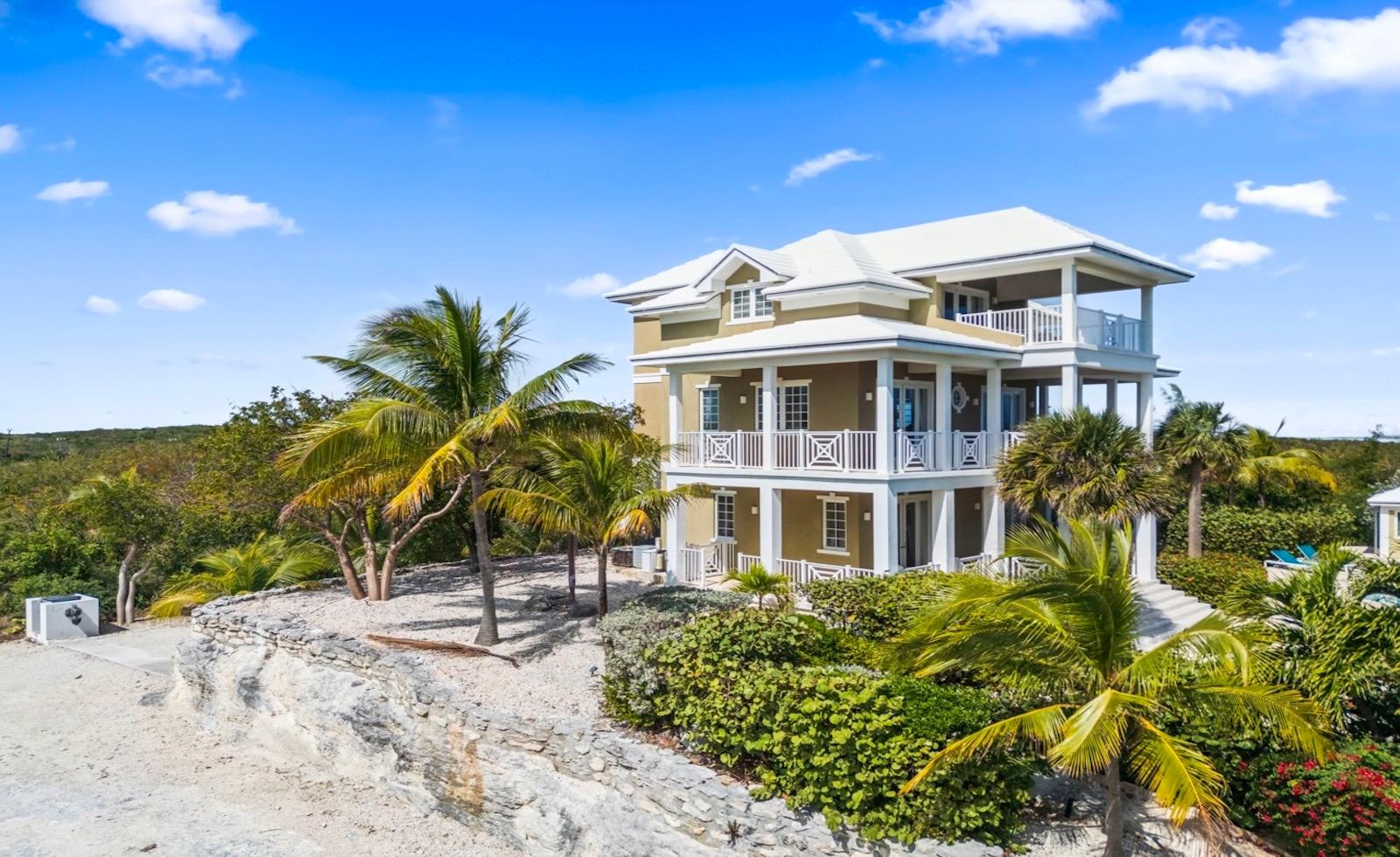 Within the exclusive gated community of February Point, this desirable residence combines elegant island living with an unbeatable investment opportunity. Perfectly positioned on 0.33 acres of lush landscape, offering complete privacy, the estate has breathtaking panoramas over the brilliant turquoise waters of Elizabeth Harbour. Professionally designed and fully furnished interiors, complete upscale finishes, span nearly 3,000 sq ft across three levels. Tray ceilings and elegant lighting complement the living room; a chefâs kitchen boasts modern appliances and a breakfast bar; a powder room on the main level; and 1,800 sq ft of covered balconies capture constant ocean breezes. Three ensuite bedrooms include the primary retreat, featuring a Jacuzzi soaking tub, walk-in shower, and separate his-and-hers vanities and closets. A guest cottage provides comfortable accommodations, while a plunge pool and covered dining terrace create a relaxed outdoor setting, and cascading bougainvillea lead toward the shoreline and beyond to a sandy beach and volleyball court with deeded park access