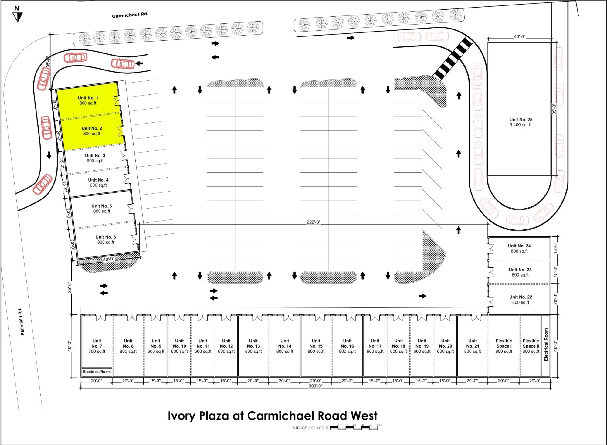 Introducing Ivory Plaza at Carmichael Road West â the ultimate destination for your business in southwestern New Providence! Poised to offer approximately 22,000 sq. ft. of commercial rental space upon (substantial) completion in early 2025, this premium commercial complex presents an unparalleled opportunity for businesses eager to thrive amidst the burgeoning commercial landscape of this predominantly residential area. Unit No. 1 + 2 is one of the prime jewels of this prestigious complex, boasting 1,600 sq. ft. of prime retail space. This unit can also be customized with a drive-thru window, subject to approval by the Ministry of Works. Ready to secure your spot at the forefront of this groundbreaking commercial hub? Contact us to learn more, schedule a tour or reserve your spot today! Price is inclusive of CAM but exclusive of VAT. CAM includes garbage disposal, common area utilities, exterior maintenance and cleaning, after-hours security, etc.