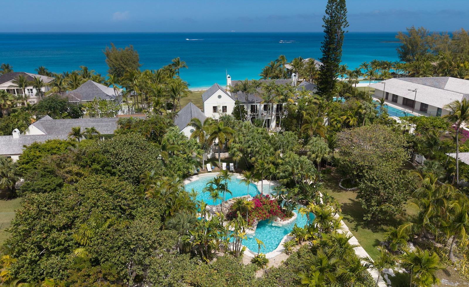 Set on three acres at the coveted western tip of Paradise Island, Kilkee House is a historic and exceptionally rare waterfront estate featuring nearly 300 feet of pristine white sand beach and protected harbour access with private docks capable of accommodating yachts up to 110 feetâoffering the ultimate combination of beachfront luxury and yachting lifestyle. The main residence spans approximately 11,000 square feet and is perfectly oriented to showcase sweeping panoramic views of the Atlantic Ocean and Nassau Harbour. Expansive terraces, lush landscaped grounds, and a resort-style pool provide a sophisticated yet inviting setting for both private relaxation and grand-scale entertaining. This extraordinary property functions as a fully private estate, providing generous guest accommodations including Ayredale House, an over 2,400-square-foot three-bedroom guest residence, and a separate private guest cottage. A dedicated service building with three staff units ensures seamless hospitality while maintaining complete privacy.