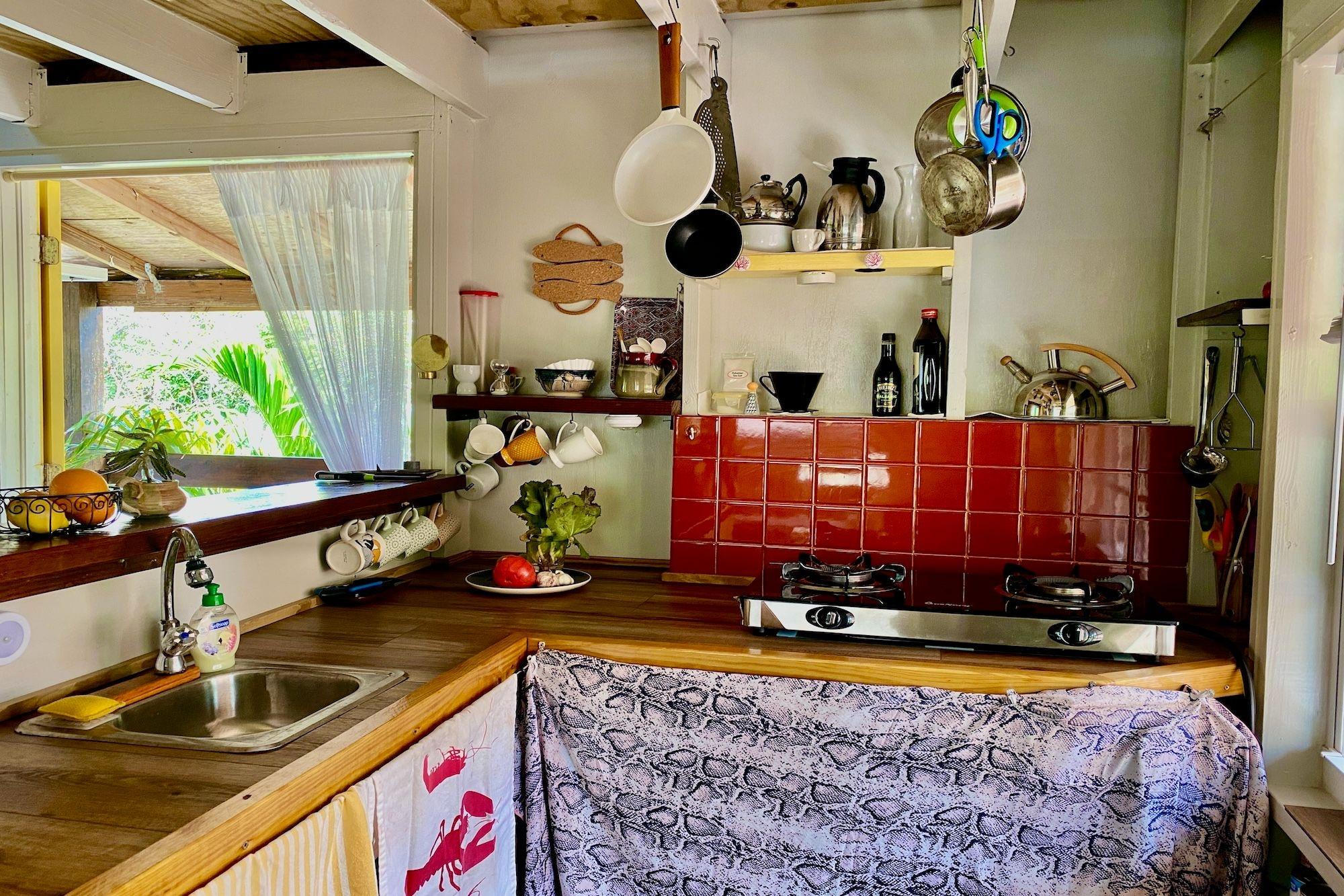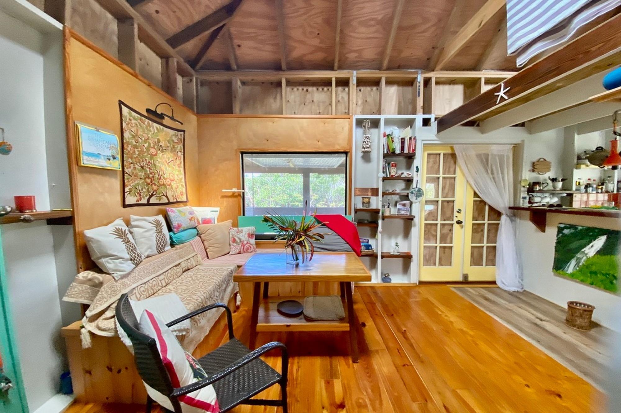 Welcome to La Pazita, a charming and eco-conscious one-bedroom, one-bath cottage tucked away in the peaceful, garden-filled community of Surferâs Beach. Thoughtfully designed for simplicity, serenity, and sustainability, this off-grid retreat offers the perfect balance of comfort and nature. This 0.22-acre property is completely off-grid, powered by a 12V solar energy system and supported by a rainwater catchment system with a concrete cistern and backup holding tankâdesigned for easy, sustainable island living. A short walk away, the pristine sands of Surferâs Beach inivte you to watch the sunrise, ride the waves or relax to the soothing rhythm of the sea