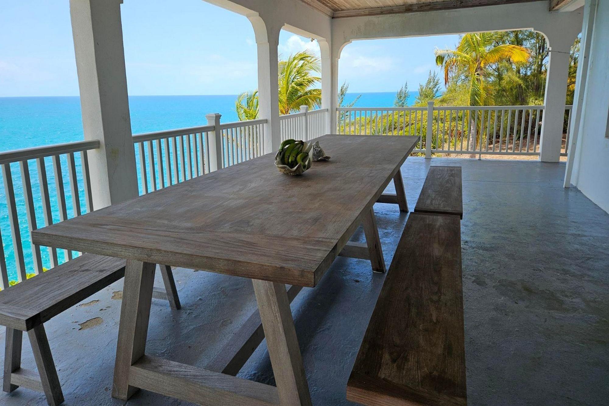Wake each day to the sound of waves and the shimmer of turquoise waters stretching endlessly before you. From your own diving board, plunge into the vibrant reef below, alive with tropical fish and coral gardens, or glide a kayak across the calm sea to nearby Rainbow Beach. Perfectly centered on Eleuthera, this home is your gateway to island adventuresâfrom the pink sands of Harbour Island to the natural wonders of Queenâs Bath and hidden sea caves. Life here is all about the outdoors. The expansive 1,500+ sq. ft. wraparound veranda is your stage for island living, where sun-drenched mornings flow into tropical evenings painted with fiery sunsets. Share laughter and fresh island fare around the handcrafted 12-seat dining table, rinse off salty swims under the open-sky outdoor showers, and let the Caribbean breeze remind you that time moves differently here. Inside, the 3-bedroom, 2-bath residence blends Restoration Hardware elegance with relaxed island comfort.