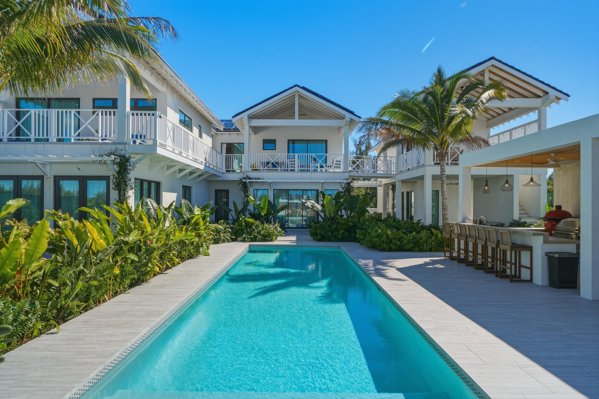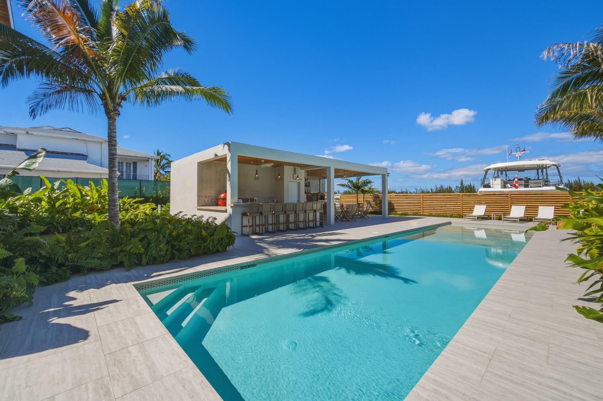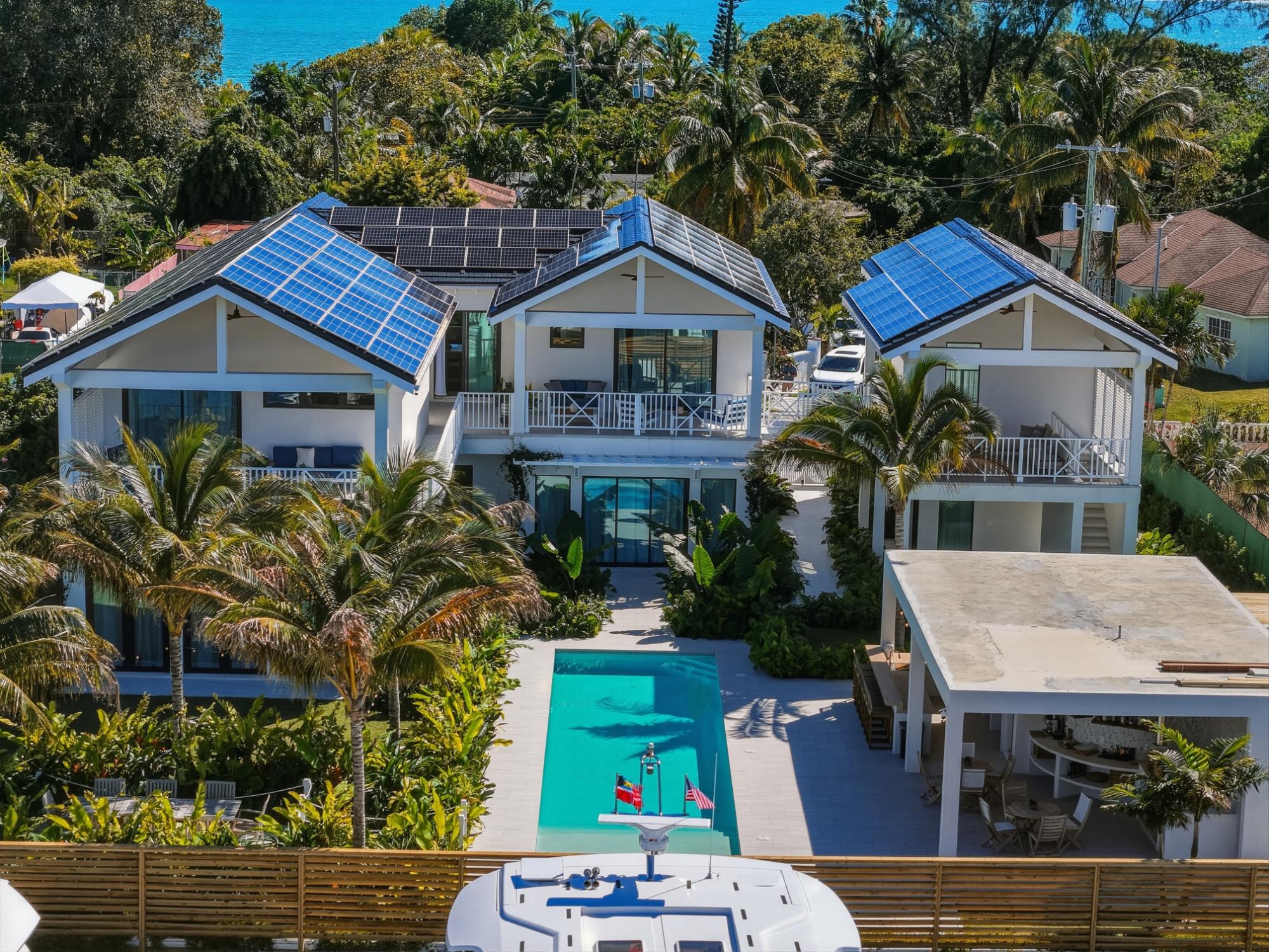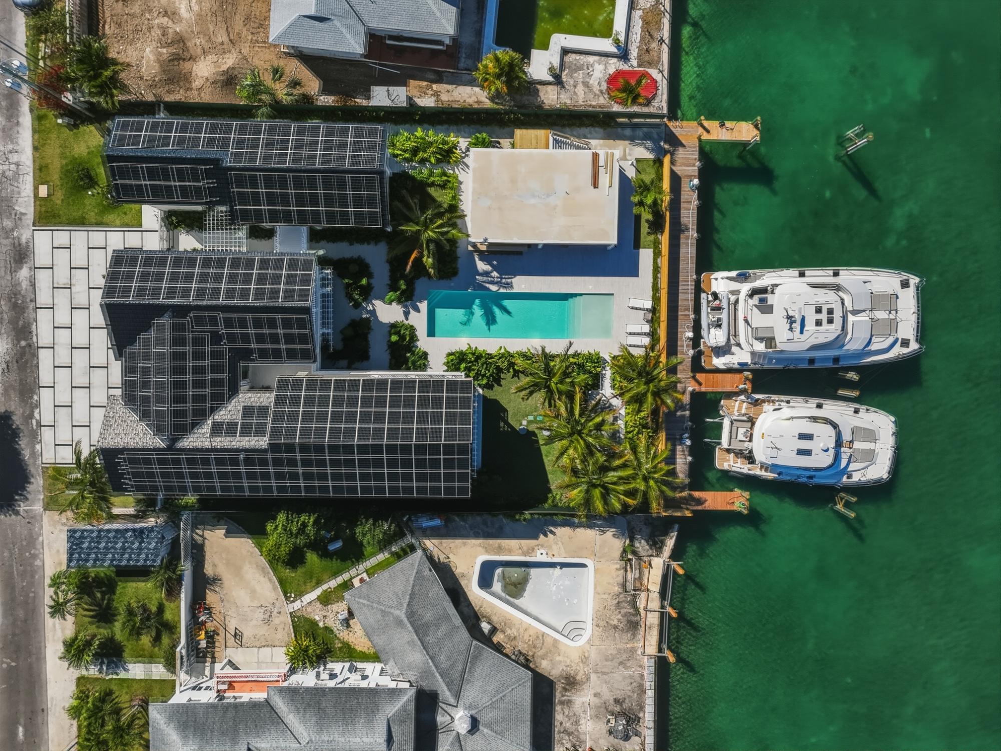 Completed in 2025 and designed with deliberate intention, Le Canal is one of the most compelling residential offerings to come to market in Nassau in recent memory. Set on a 14,000 sq ft lot along the protected canal in Coral Harbour â a quiet, no-through-road enclave minutes from the international airport and the best of Nassau â the property unfolds across 6,700 square feet of thoughtfully conceived living, with a dock capable of accommodating two vessels of significant size and direct access to open water. The architecture is quintessentially Bahamian in spirit â white stucco, metal roof, cedar-lined covered terraces â but the execution is unmistakably international in standard. Solar panels across both structures speak to a commitment to energy independence, while steel and concrete construction, full insulation, and a drilled well with reverse osmosis ensure the home performs as well as it presents. The property conveys fully furnished and includes a detached guest house, workshop, three-car garage, and parking for eight â a compound in every sense.