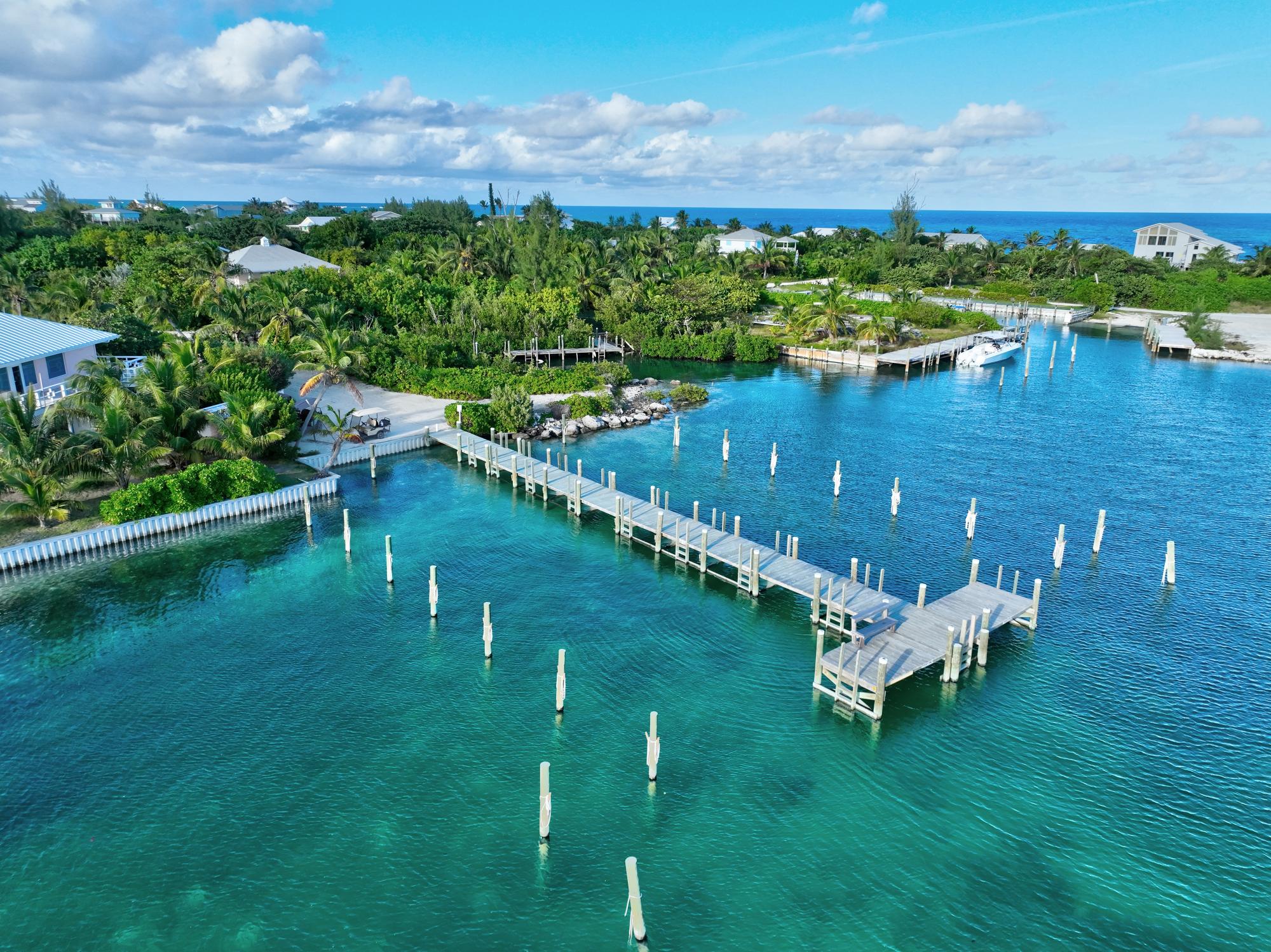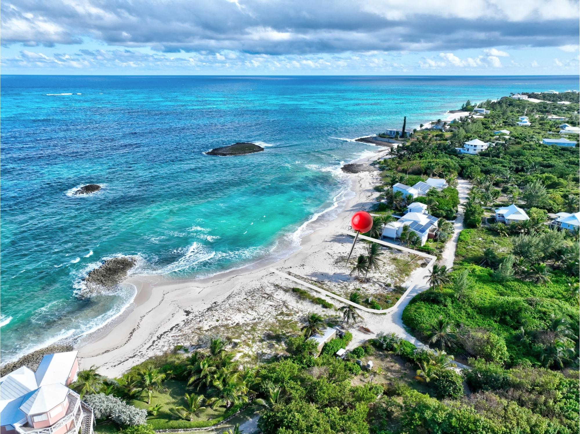 Beautiful beachfront property on the quiet north end of Elbow Cay, on the Atlantic side, but situated in the crest of a cove and protected by reef, so the water remains calm and swimmable year-round. Dockage is a short golf cart ride away at the north end community dock, also known as âGans Dockâ. The quaint settlement of Hope Town is about a 10 minute golf cart ride where you will find everything you need from restaurants, grocery stores, liquor stores and gift shops.