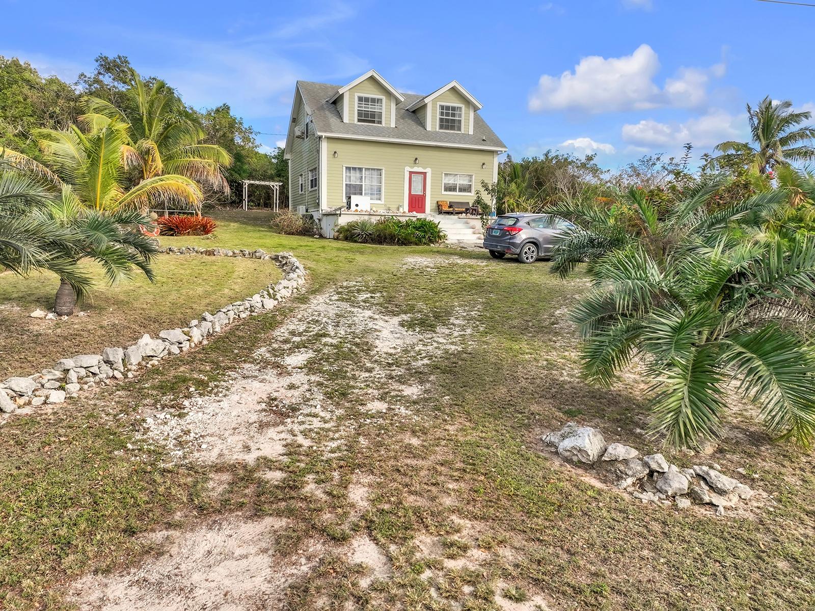 Wake up to sweeping views of Rock Sound Harbour and the beauty of island living. Perched on an elevated hillside, this inviting 3-bedroom, 2-bath home offers approximately 1,800 sq. ft. of living space with cooling ocean breezes and peaceful surroundings. The main level features a well-equipped kitchen with a snack bar, dining area, living room, den, and full bath under A/C. Upstairs offers three bedrooms, each with its own A/C, a full bath, and 15-foot cathedral ceilings. A 330 sq. ft. front deck provides the perfect setting for sunsets and harbour views and sits atop a 16,000-gallon rainwater tank. Conveniently located just 5 minutes from Rock Sound Airport and near Ocean Hole, shopping, and amenities, this property is ideal as a full-time residence or island retreat.