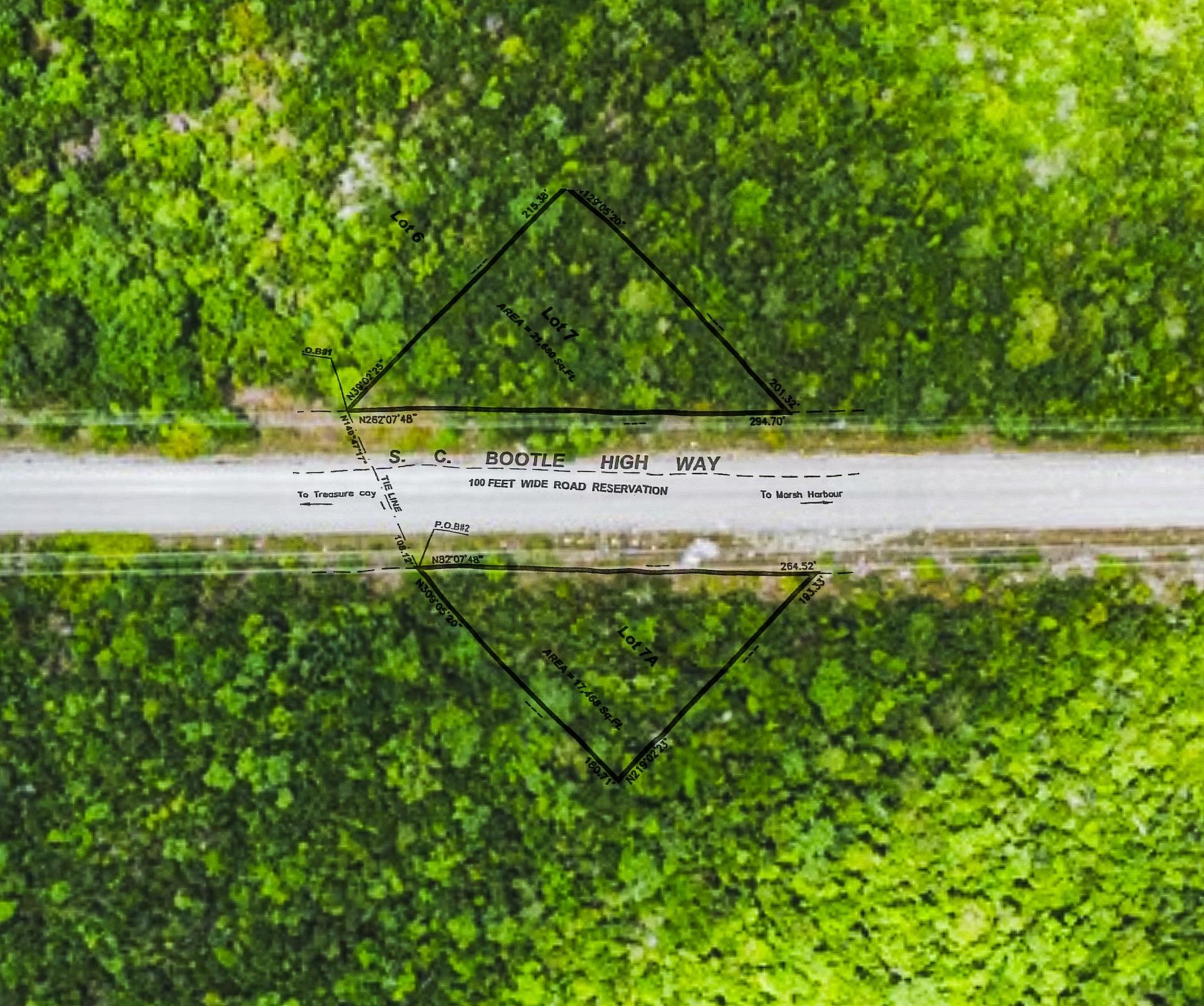 Lot 7 is an exceptional roadside lot, located on S.C Bootle Highway. Totaling 21,680 sq ft, itâs proximity with both Treasure Cay and Central Abaco, being within a 15 minute drive of either, and within minutes of Red Bay and Bakerâs Creek, means this lot is primed for investment. Zoned for either residential or commercial development, itâs unique triangle shape, and a whopping 295 feet of road frontage, this lot presents incredible opportunity at a great price.