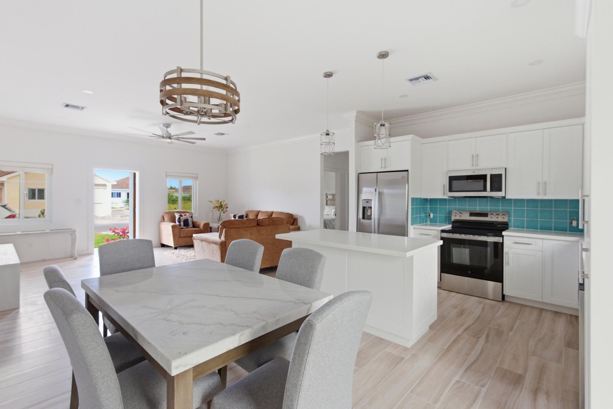 Welcome to Lot 8, Block 30, Lucayan Drive, a newly built rental home offering easy, move-in ready living. This 3-bed single family home features approximately 1,750 sq ft of interior space on a 6,400 sq ft lot with a lovely garden for relaxing or entertaining. The home includes three bedrooms with built-in closets and two and a half bathrooms with modern finishes. Offered fully furnished, with brand new furniture and appliances allowing for a seamless move-in experience. Central air conditioning and ceiling fans provide comfort, while a covered entry porch creates a welcoming outdoor seating area. A private driveway adds convenience. Located in the gated community of Serenity with 24/7 security, residents enjoy a clubhouse, fitness center, pools, tennis and basketball courts, and a playground. Just minutes from Albany, Lyford Cay, and Old Fort Bay, this home offers quick access to dining, shopping, and recreation in a peaceful setting.