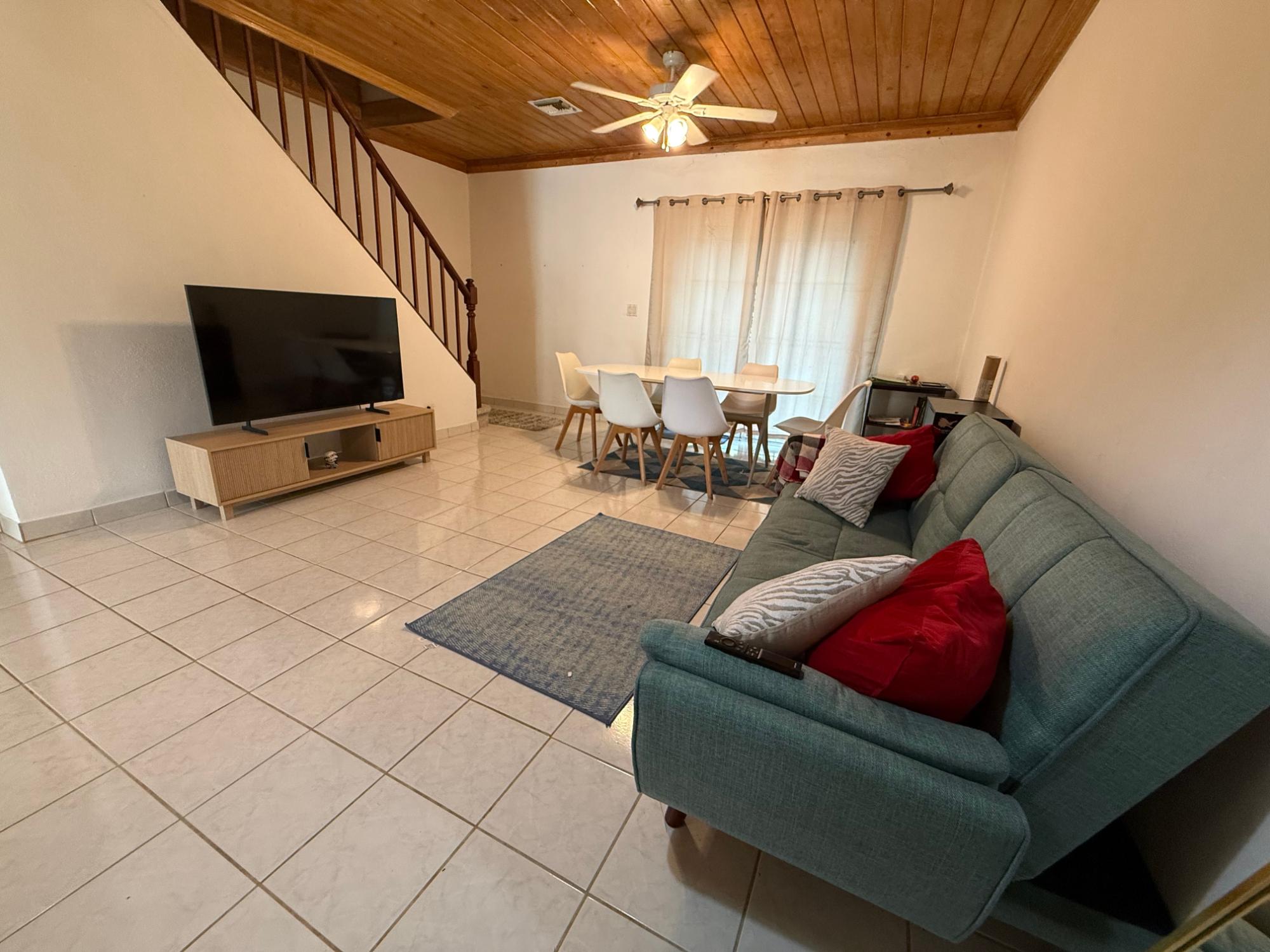 This spacious townhouse in Vista Marina, a conveniently located residential community in western New Providence, features two bedrooms, one full bathroom, and a powder room. The townhome offers an open-concept living and dining area, a functional kitchen, and a dedicated laundry closet. All windows have been upgraded to impact-resistant glass. Both bedrooms include private balconies with impact-rated doors, and an additional impact sliding door opens onto the rear patio and garden. This unit is within walking distance to Saunders Beach and easy access to shopping.