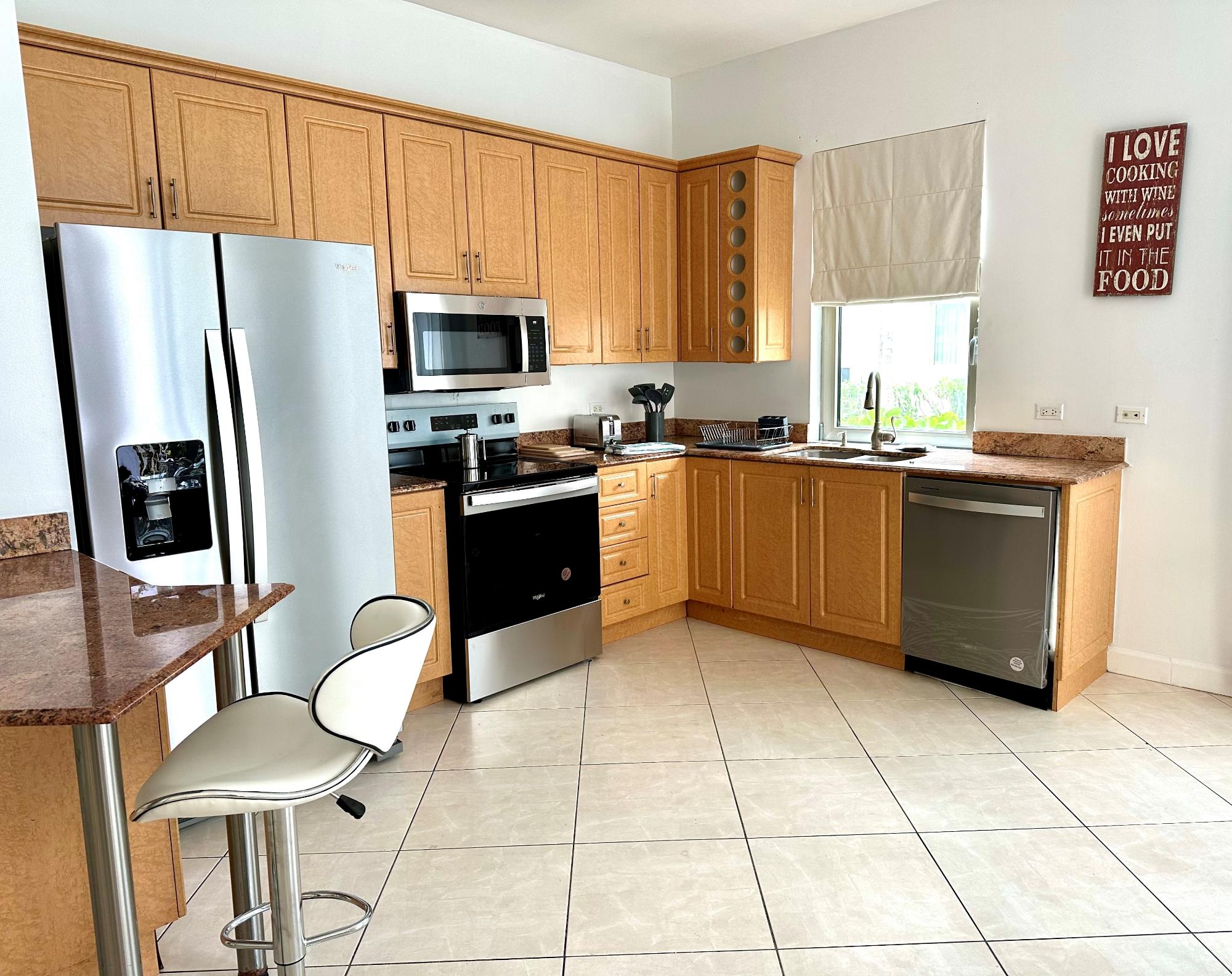 Experience luxury beachfront living at Love Beach! This stunning ground floor fully renovated apartment offers 3 bedrooms and 3.5 bathrooms. The open-plan design seamlessly integrates the sitting, dining, and kitchen areas, which open onto a balcony with breathtaking sea views. Fully equipped with brand-new appliances and a stocked kitchen boasting utensils, dinnerware, and flatware for 8, this home is ready for immediate enjoyment. Freshly painted and decorated, it features new linens and towels provided for all bedrooms and bathrooms, including beach towels. Pet-friendly with an additional security deposit, the gated community ensures security and privacy, while amenities like a swimming pool complement the pristine beach just steps away. Located minutes from Sol y Mar and other restaurants, and a short drive 5-minute drive to the airport and Old Fort Bay Plaza and Fresh Market. This is coastal living at its finest.
